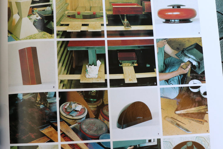 丸富漆器はイタリア人デザイナー・Ettore Sottsassとの出会いをきっかけに、業務用漆器(樹脂製食器にウレタン塗装)の技術を活用したMarutomiブランドのプロダクトシリーズを展開。ソットサスを含む海外の著名デザイナーとのコラボレーションで花器や鏡、トレーなどのプロダクトを次々と発表した。現在は生産終了しており、デッドストックを販売している。