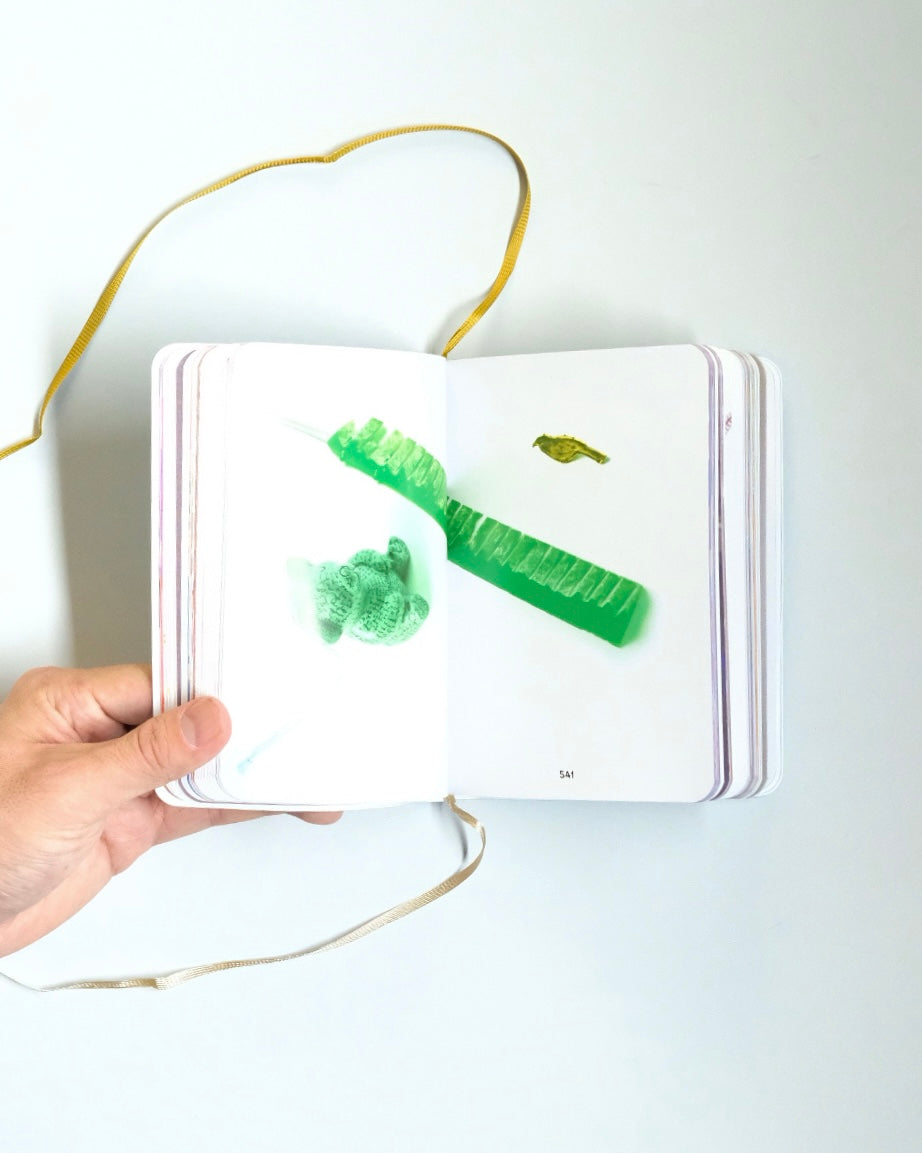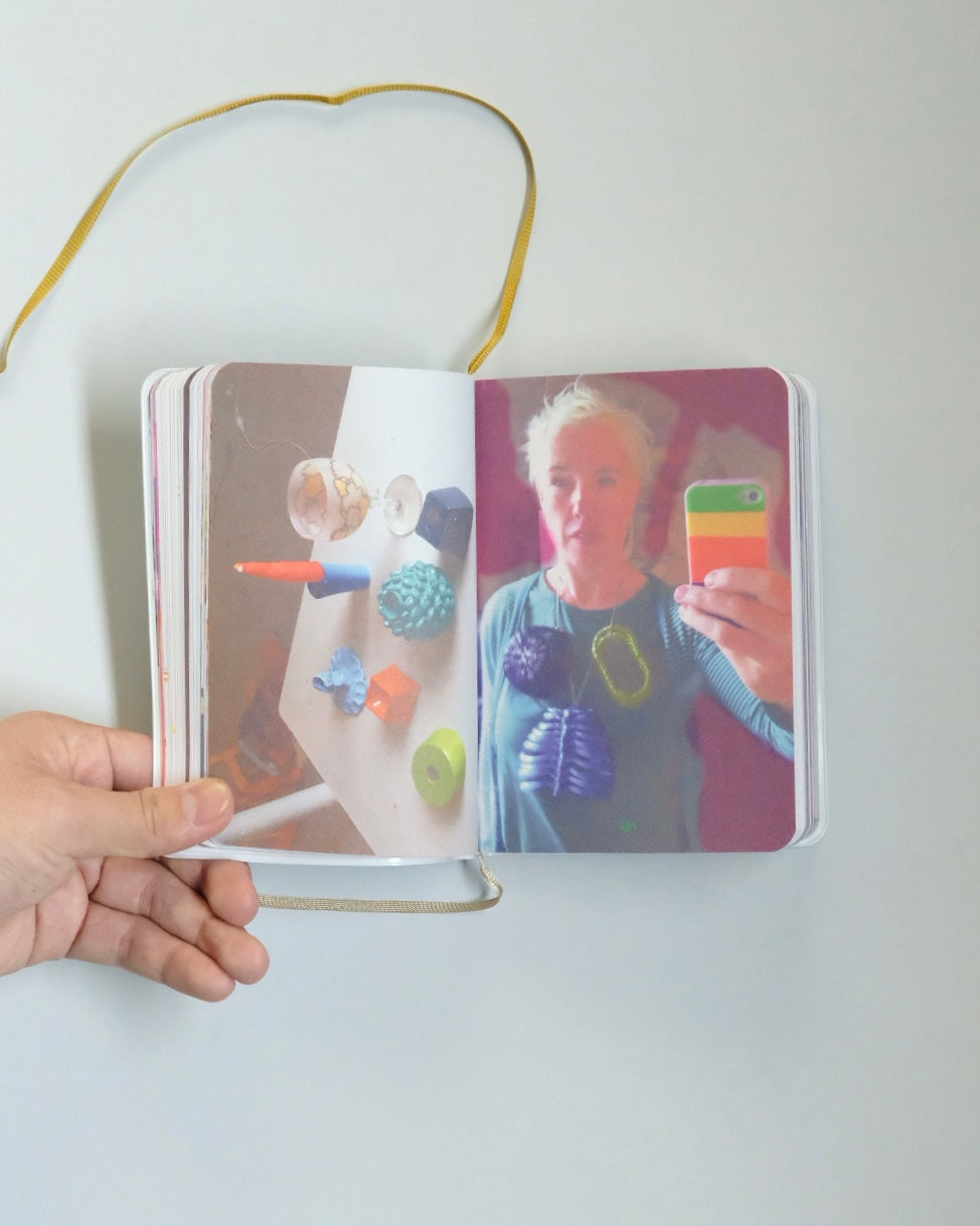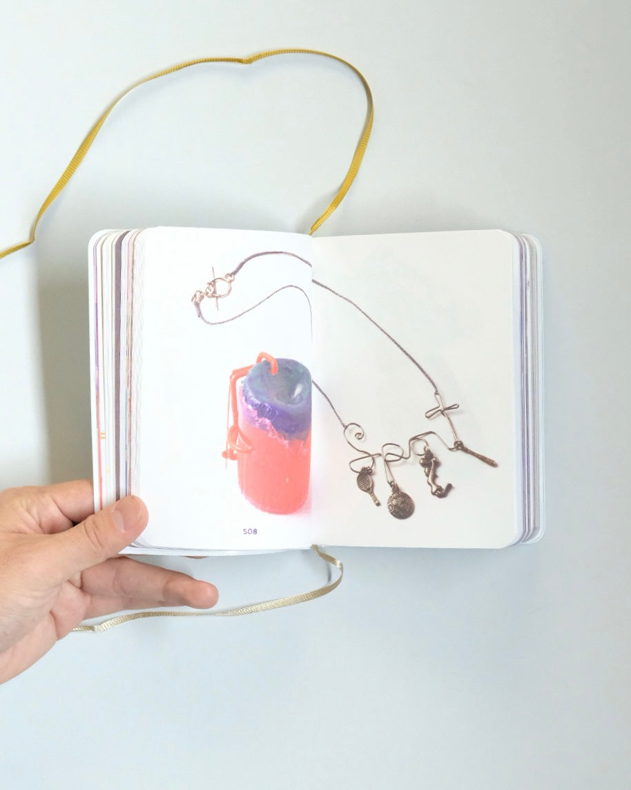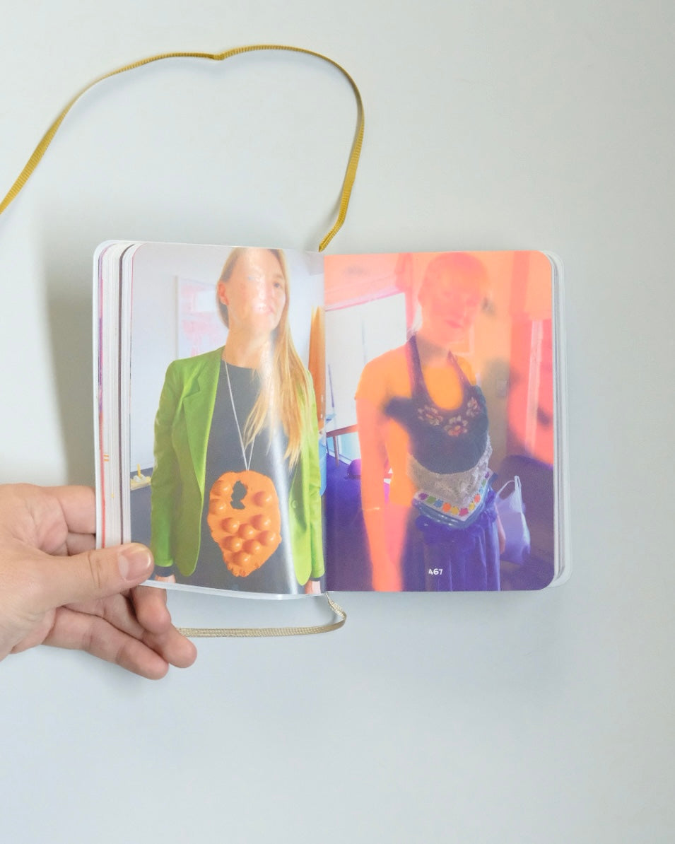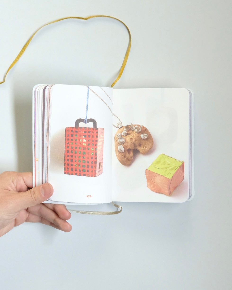 アクセサリー作家、リサ・ウォーカーの作品をまとめたボリュームたっぷりビビッドカラーのアーティストブックです。ページをめくるたびにおもちゃや日用品を組み合わせた摩訶不思議なアクセサリーが登場し、きつめに彩色された紙面のおかげか、まるで愉快な幻覚を見ているような気持ちにさせられます。遊び心たっぷりで身につけている人も楽しそうです。何より、きちんとアクセサリーとして機能しているという凄さがあります(例: ネックレスの紐の先にぶら下がっているのがノートパソコンでも!)。