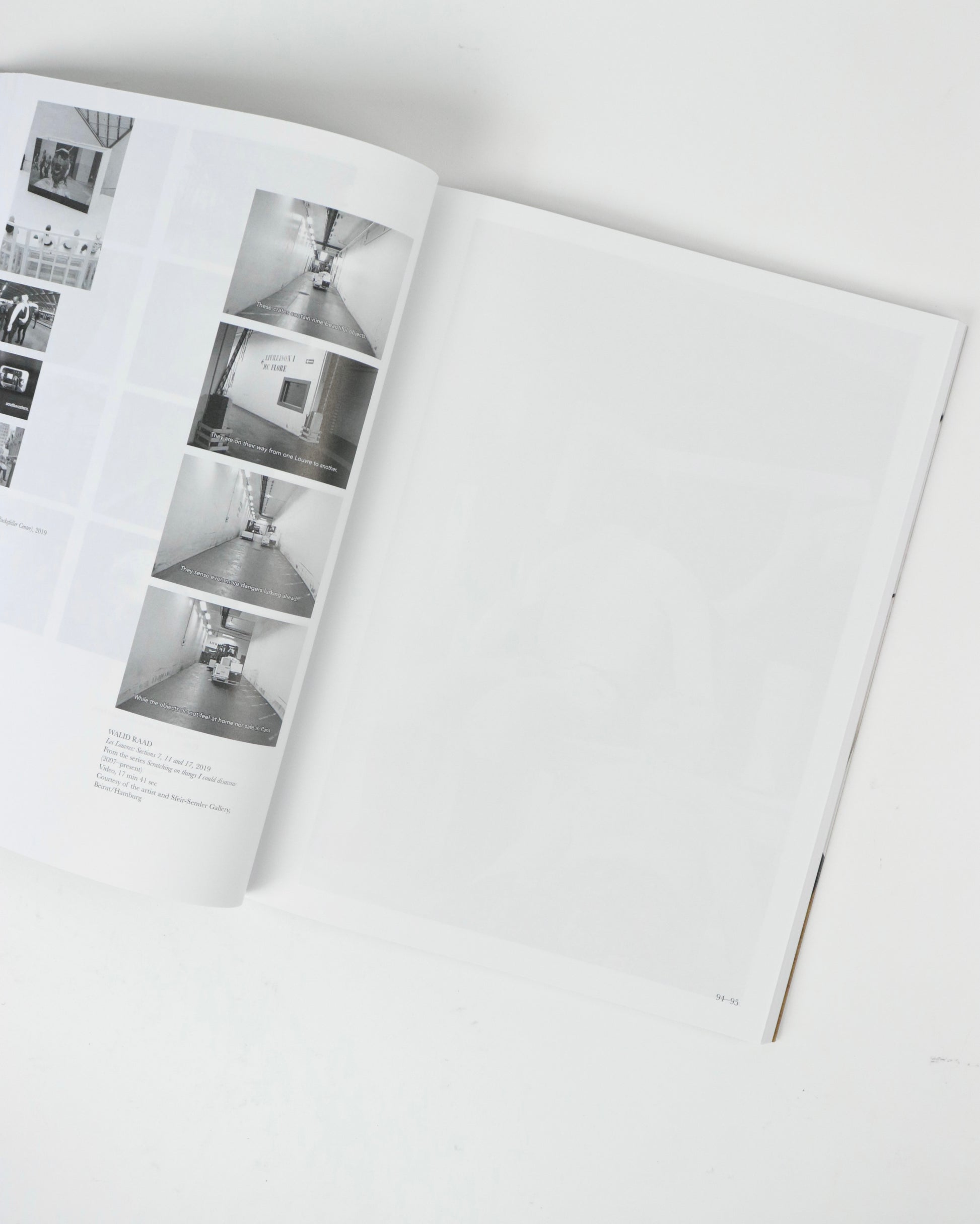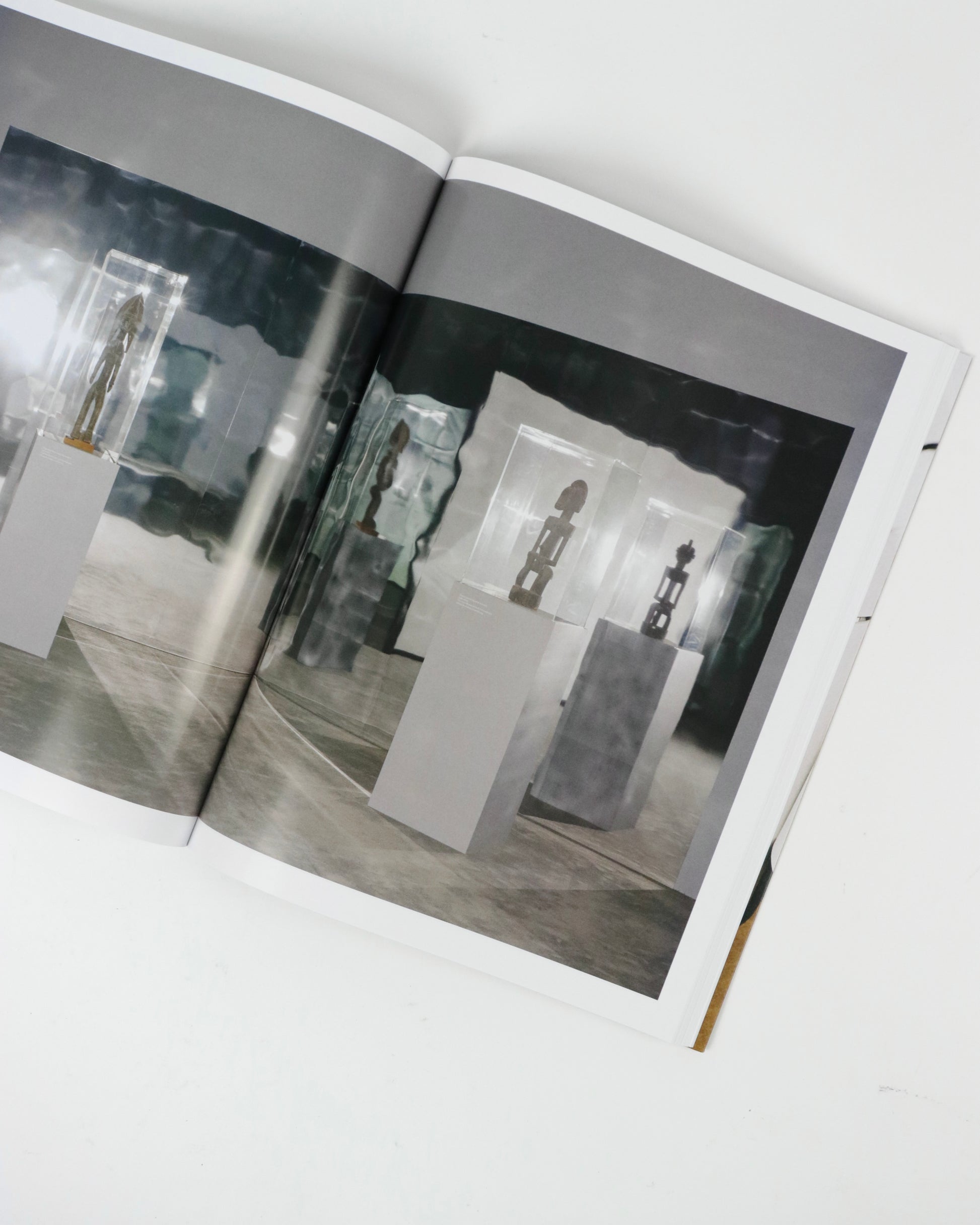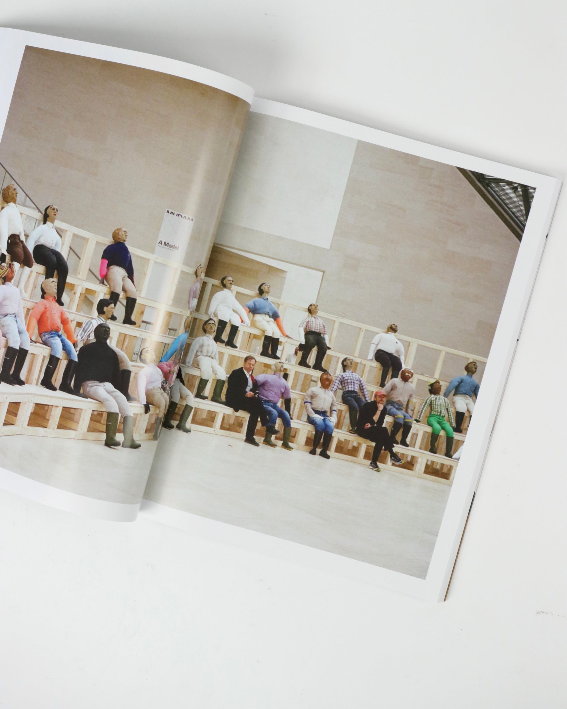 「A Model」は、Mudam Luxembourg(ジャン大公近代美術館)での展覧会と並行して刊行されました。美術館のディレクター Bettina Steinbrügge は、この展覧会を常に進化を続ける現代美術館との対話として構想しました。本書は、美術館が理論、実践、運用において果たし得る役割についてのエッセイを収録し、Steinbrügge が展覧会に参加したアーティストたちと、この移り変わるアイデアに向き合うためにどのように関わっているかを物語っています。Nina Beier & Bob Kil、Rayyane Tabet、Oscar Murillo、Claire Fontaine による主要作品と、Alvar Aalto や Tomaso Binga といった歴史的作品を委嘱した本展は、プロローグ、ボディ、エピローグという形式を用いて、美術館スペースにおける様々なジェスチャーを重ね合わせています。同様にこの本は、デザイナー Julie Peeters、写真家 Adrianna Glaviano、アーティスト Jason Dodge が編集者として参加し、ページの間に新しい展示会「A Model」を開催する出版物として制作されています。