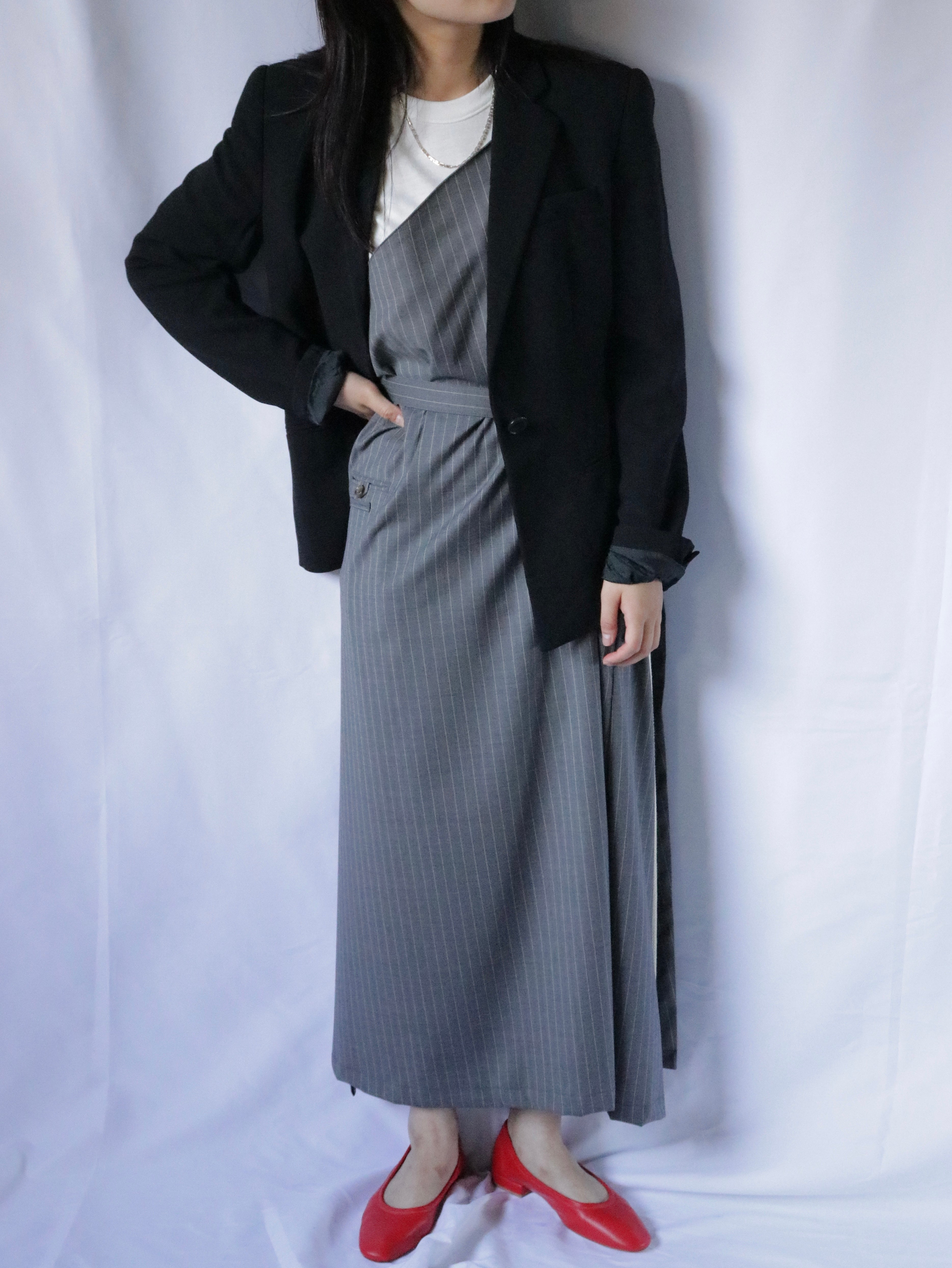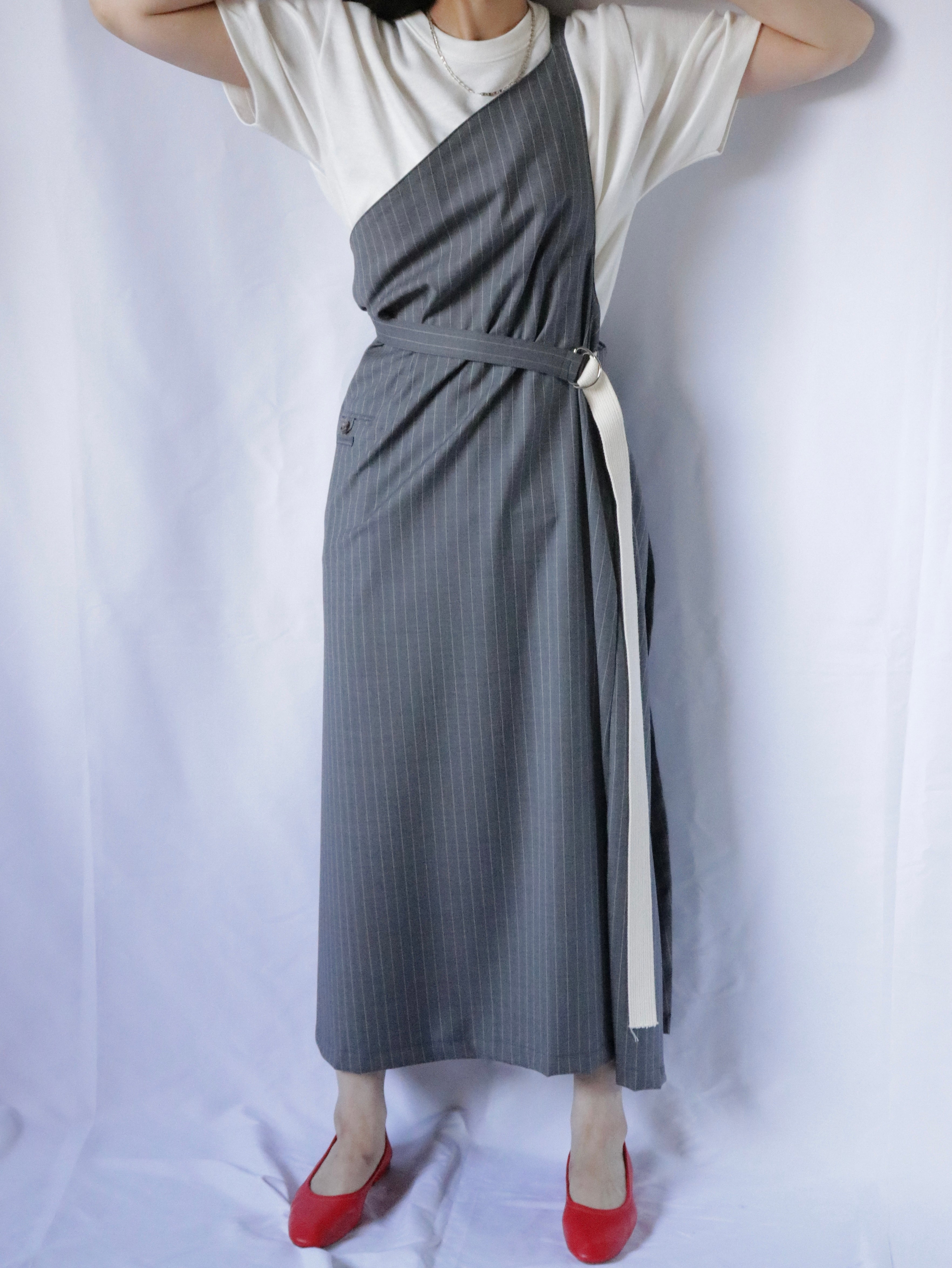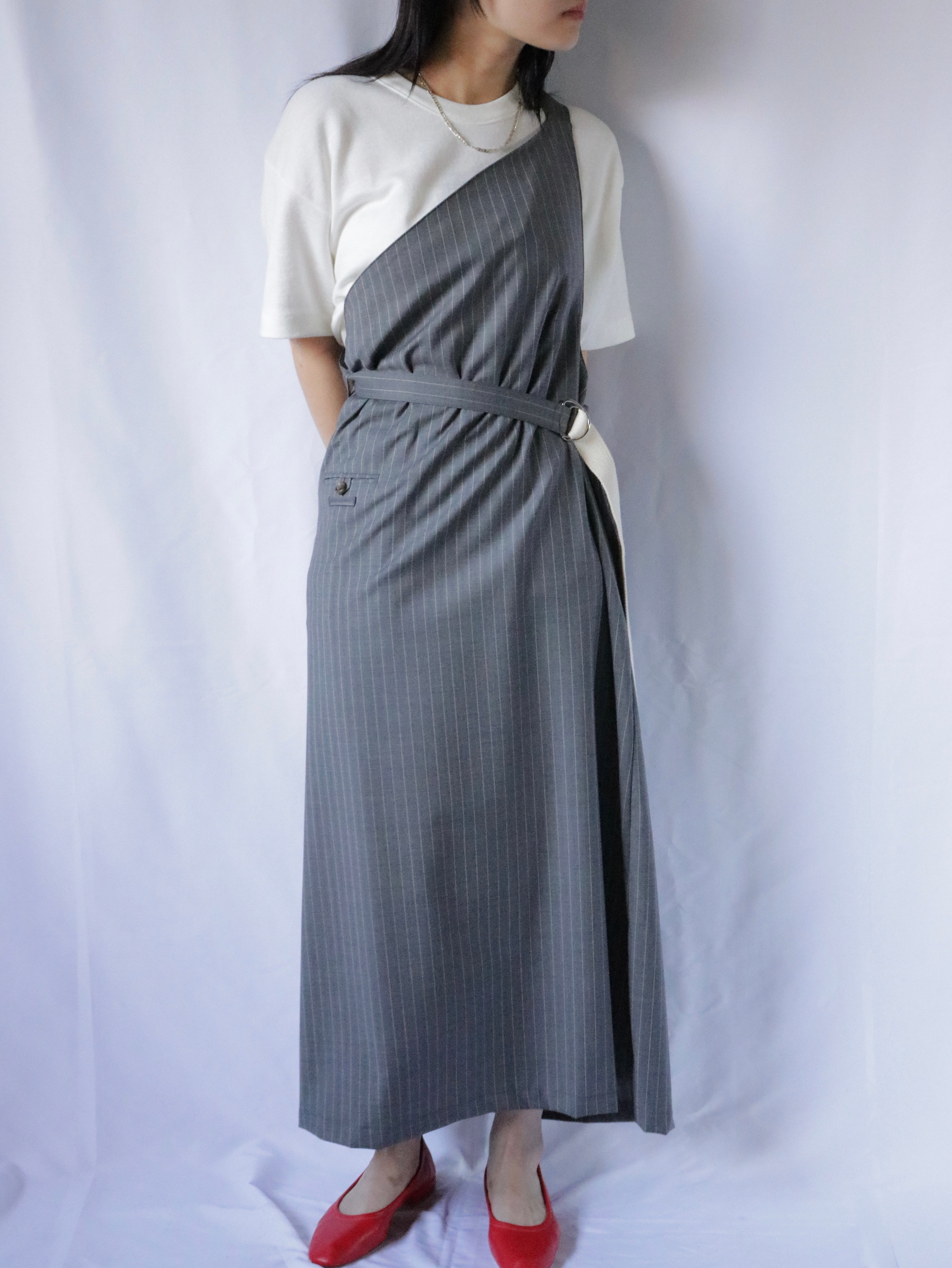 スーツ地を使ったエプロンドレス。