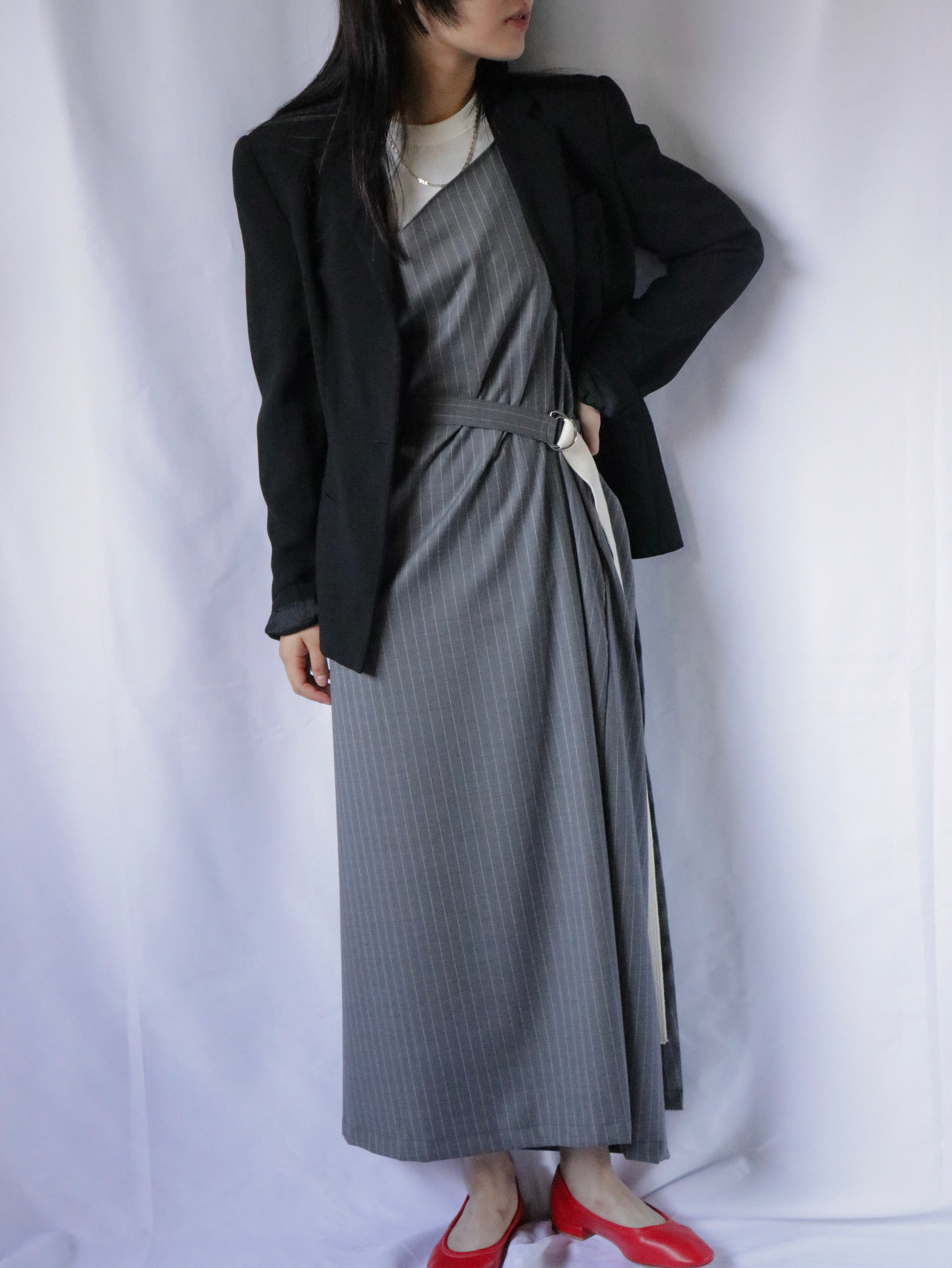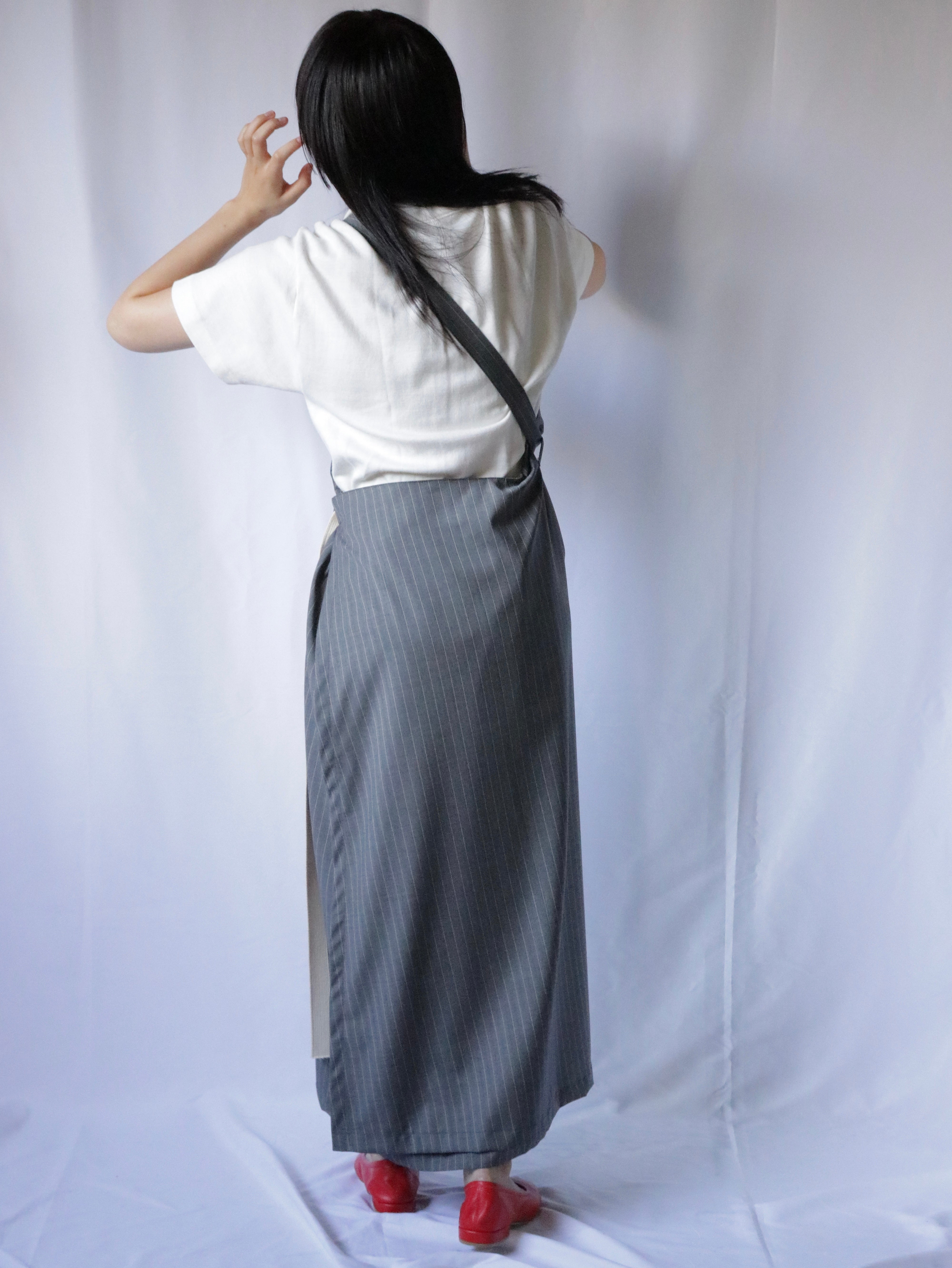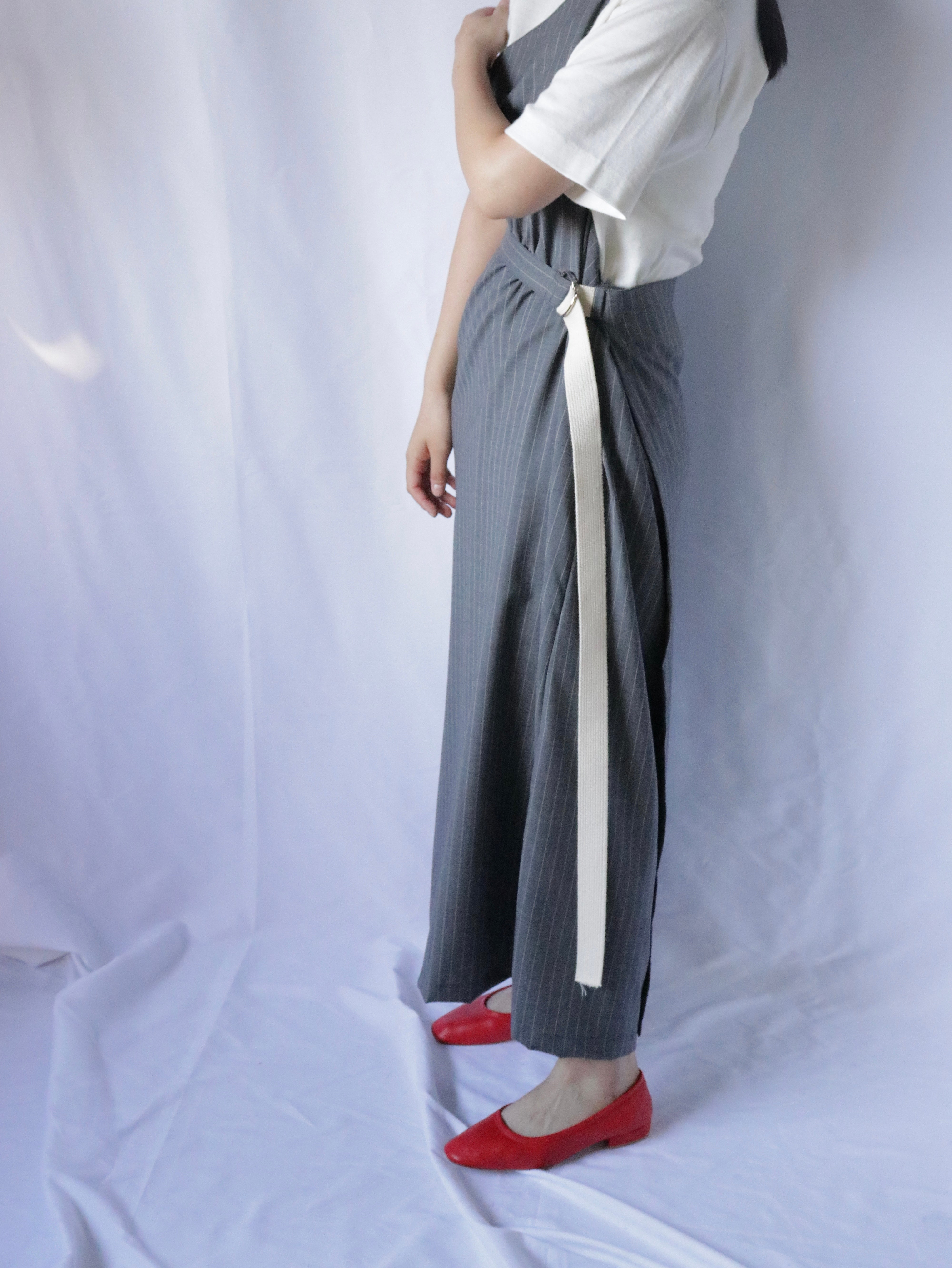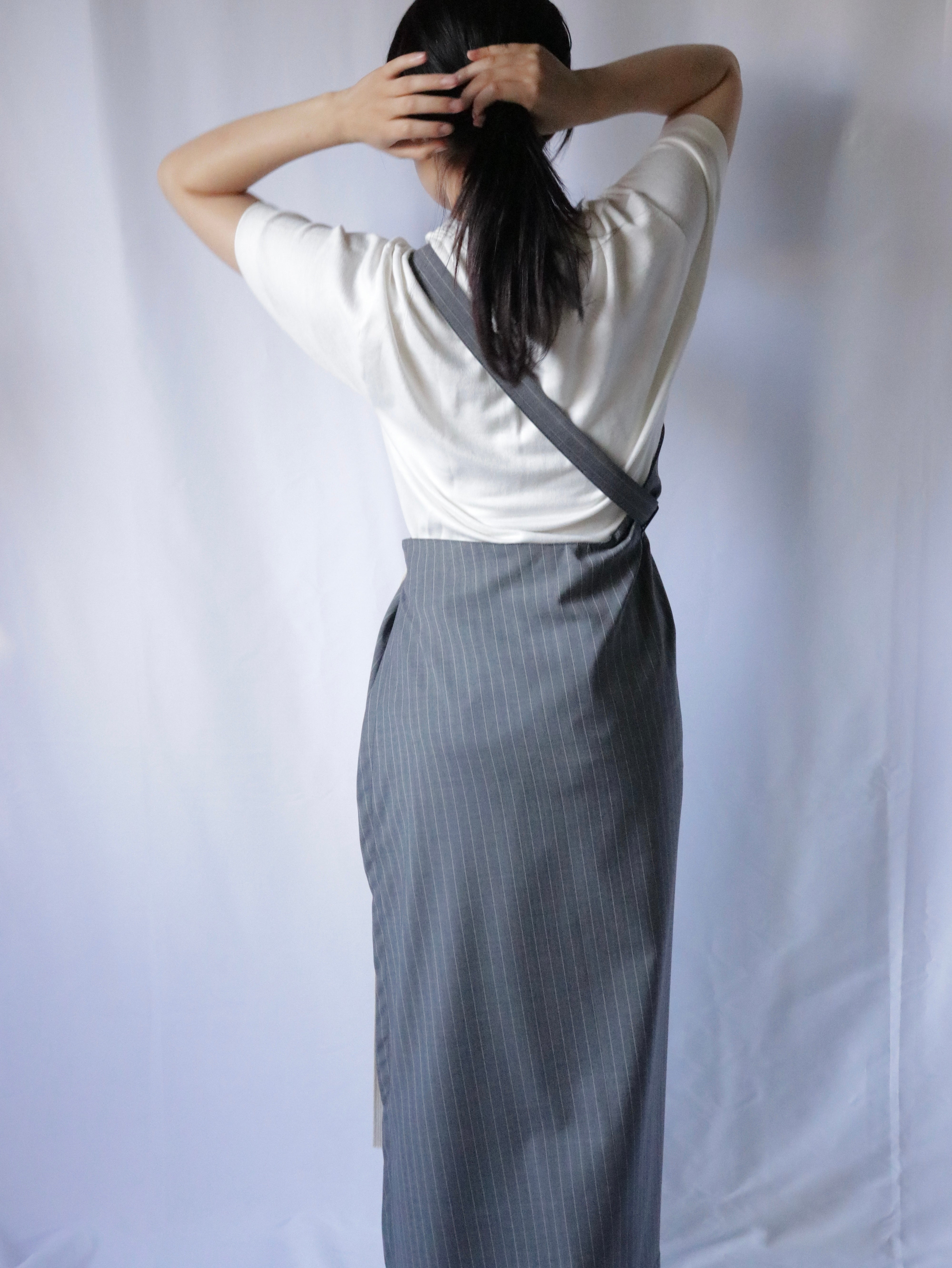 スーツ地を使ったエプロンドレス。
