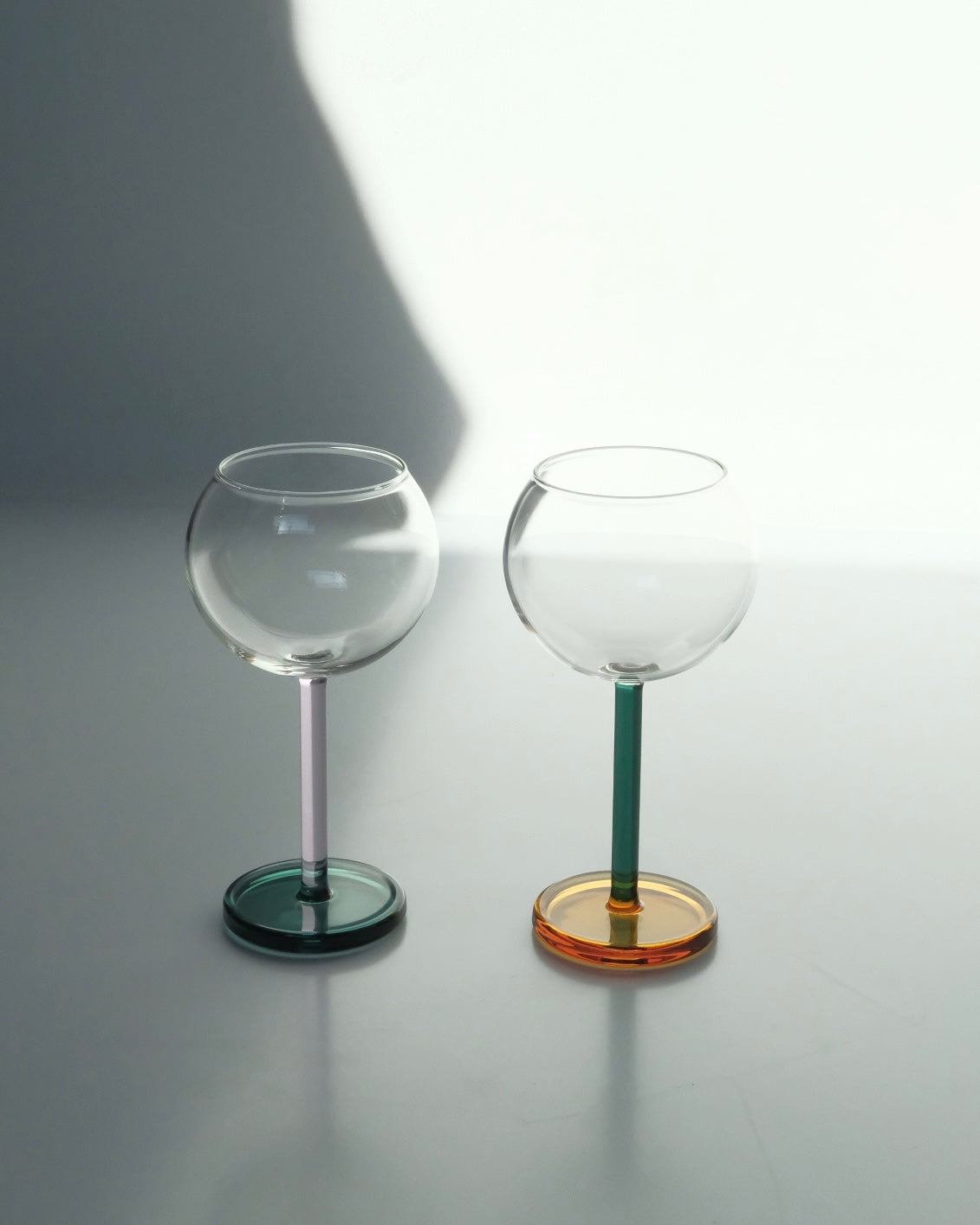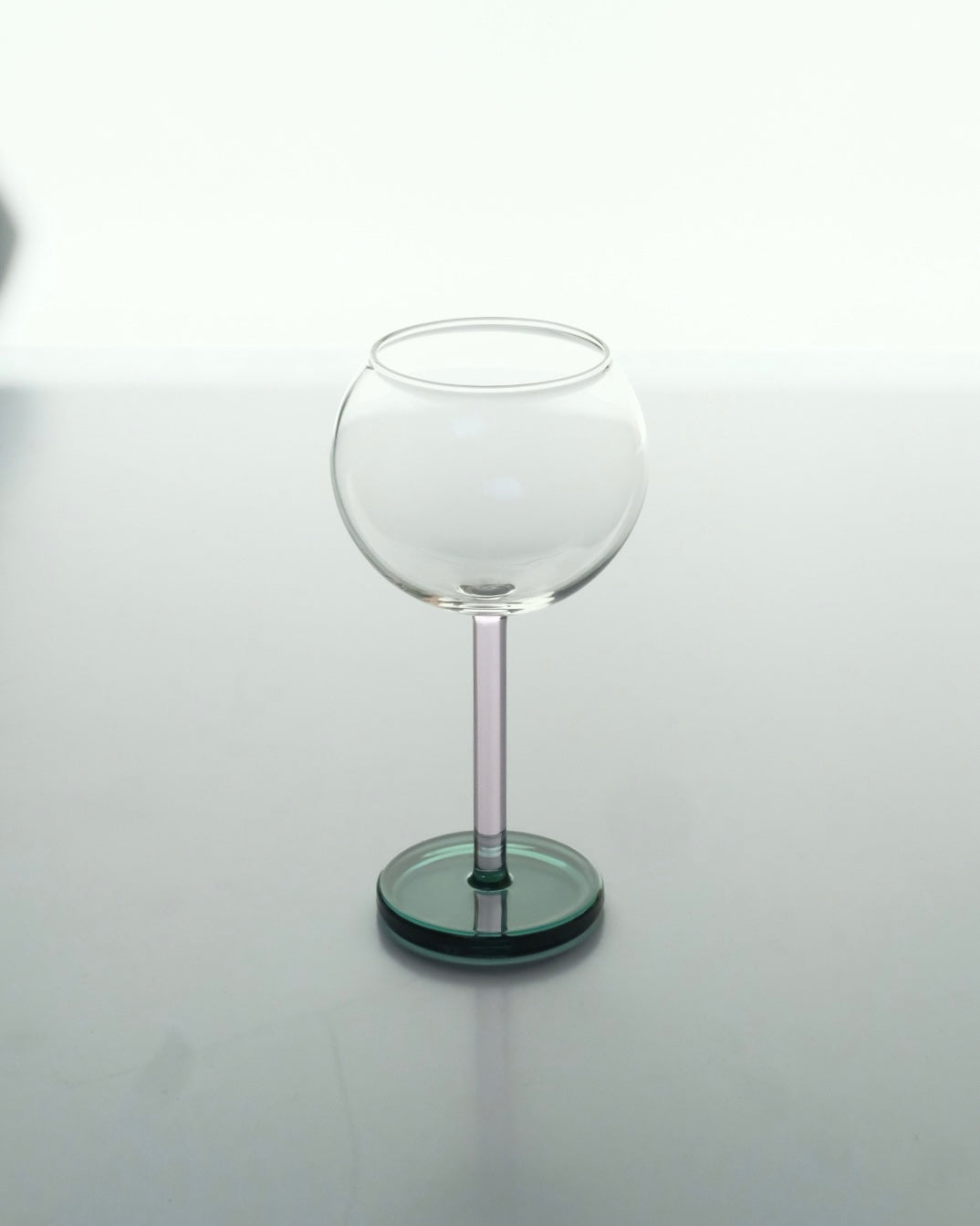 風船のような形をしたフレンチバルーンスタイルのグラス。香りを効果的に閉じ込め、香りを最大限に引き出す設計で制作されています。彼女が自然溢れる環境で培った独創的な色遣いと、こよなく愛する装飾芸術の多岐にわたるリサーチにより生まれた作品です。