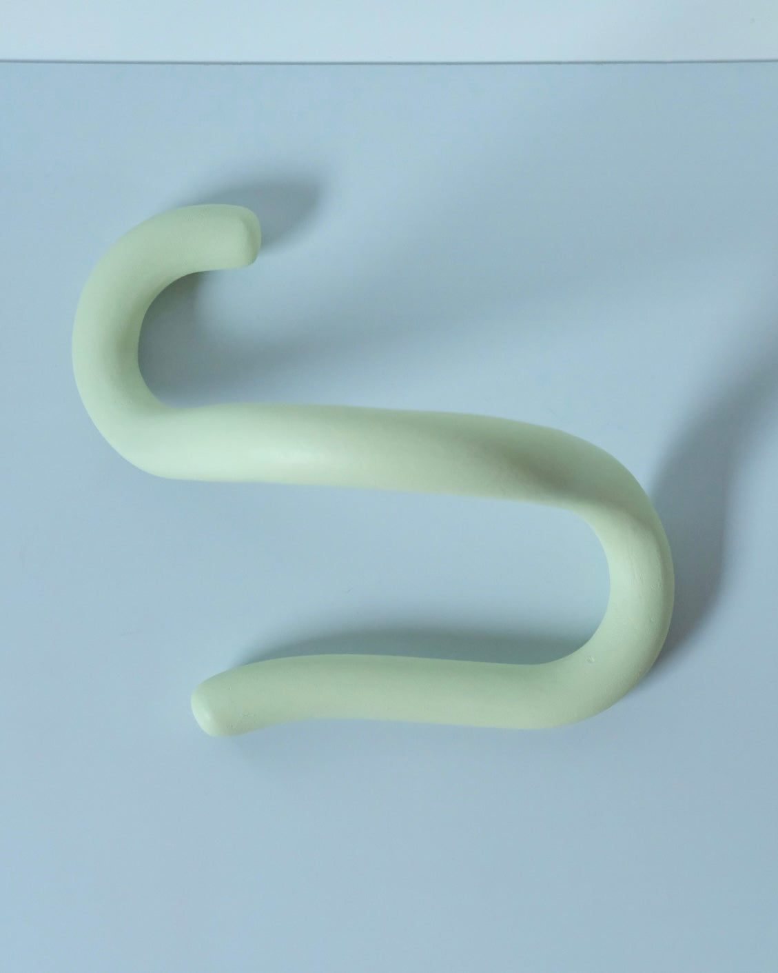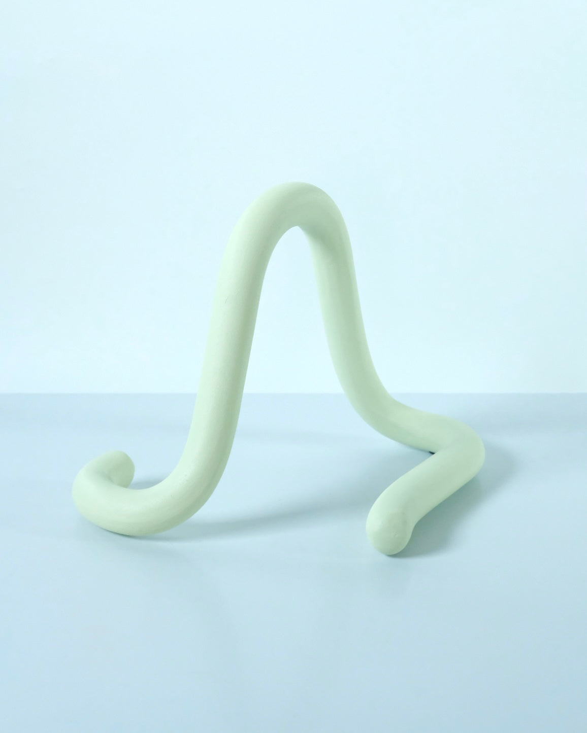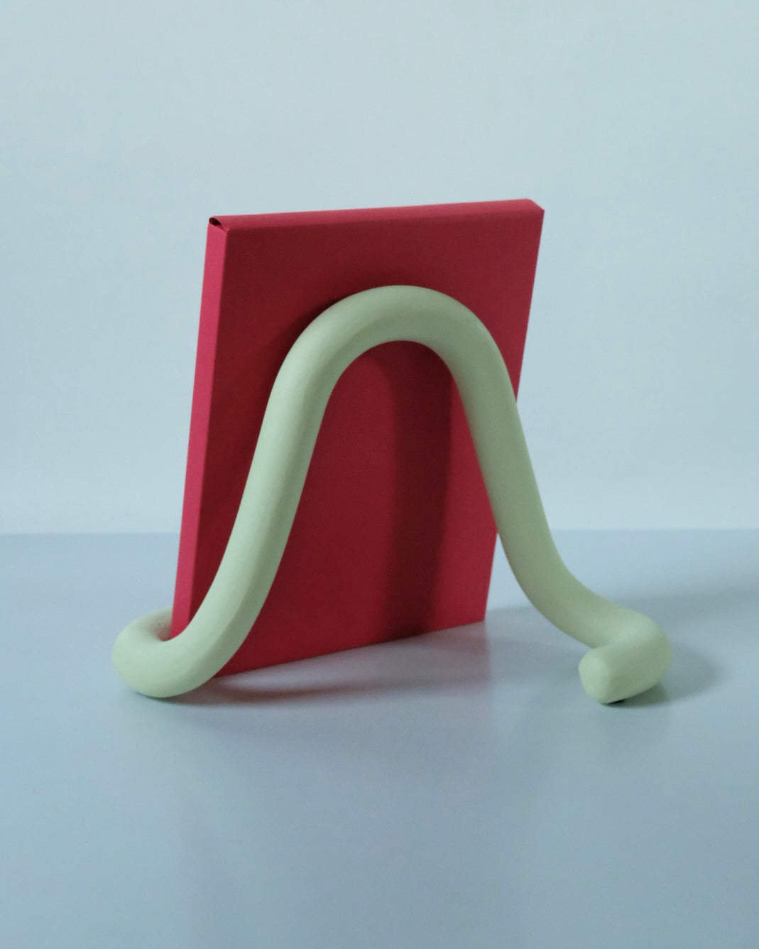 Hwachan LeeとYoomin MaengによるデザインデュオKUO DUOが、流動的でオーガニックなラインを想像して製作したBOOK WORM。従来の支えるためのブックスタンドとは異なり、直線で硬い本と棚の間に流れるダイナミックな感覚を表現しています。本がBOOK WORMと共に固定されることにより、本を含めた全体がある種のオブジェとして、自由な作品へと生まれ変わります。もともと粘土樹脂で手作りされたBOOK WORMを、WEKINOとの協働により、アルミニウムサンドキャスティングを使用し生産されました。サンドキャストにより特徴的なテクスチャーをもった「本の虫」です。底部にクッション付き。