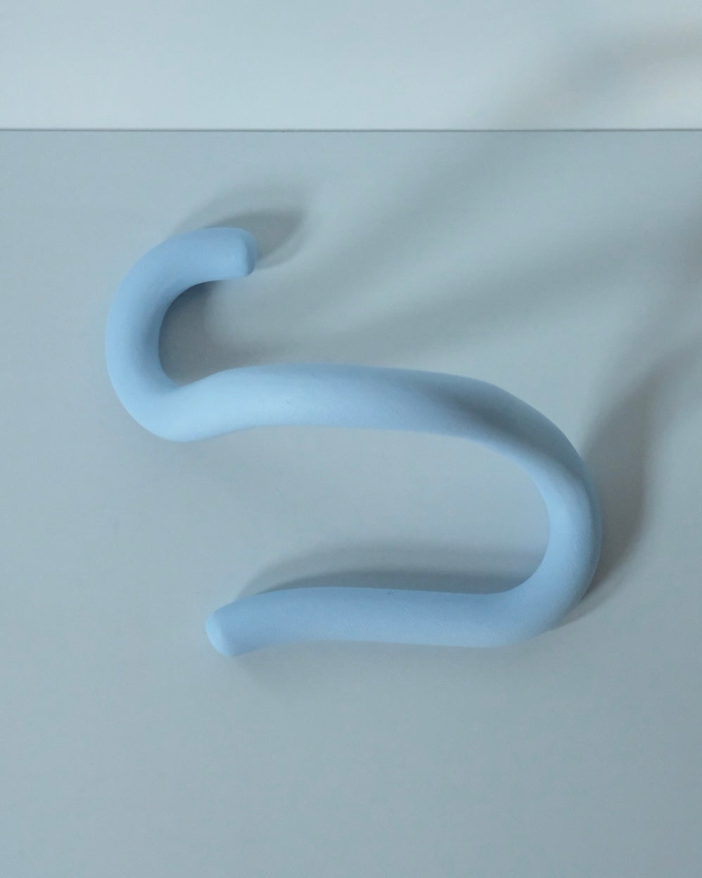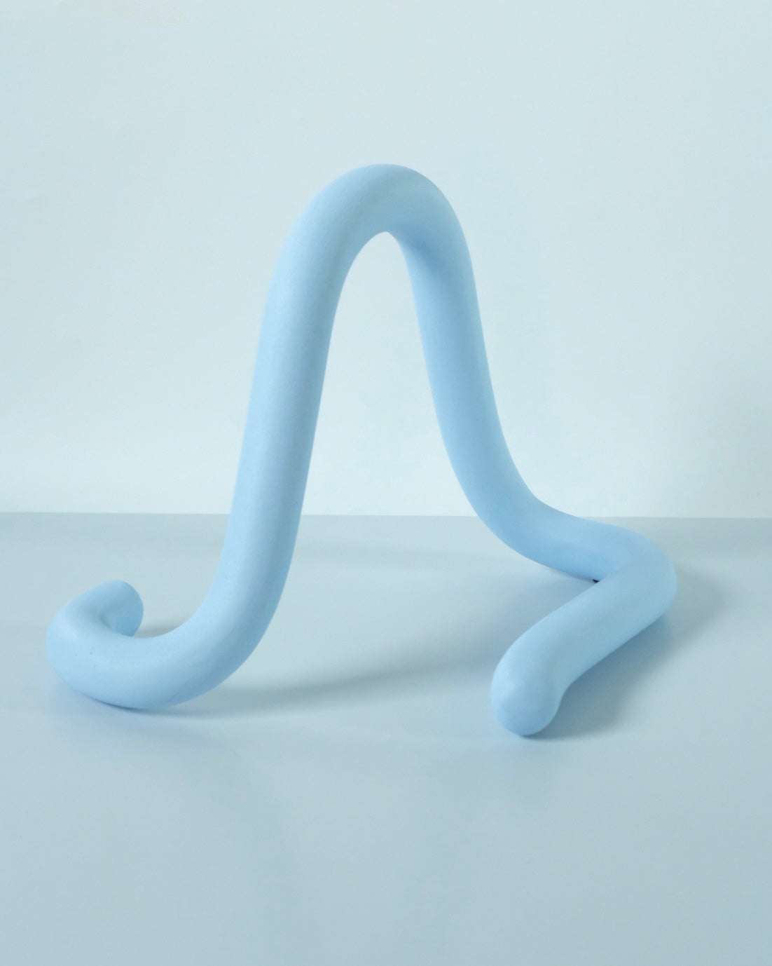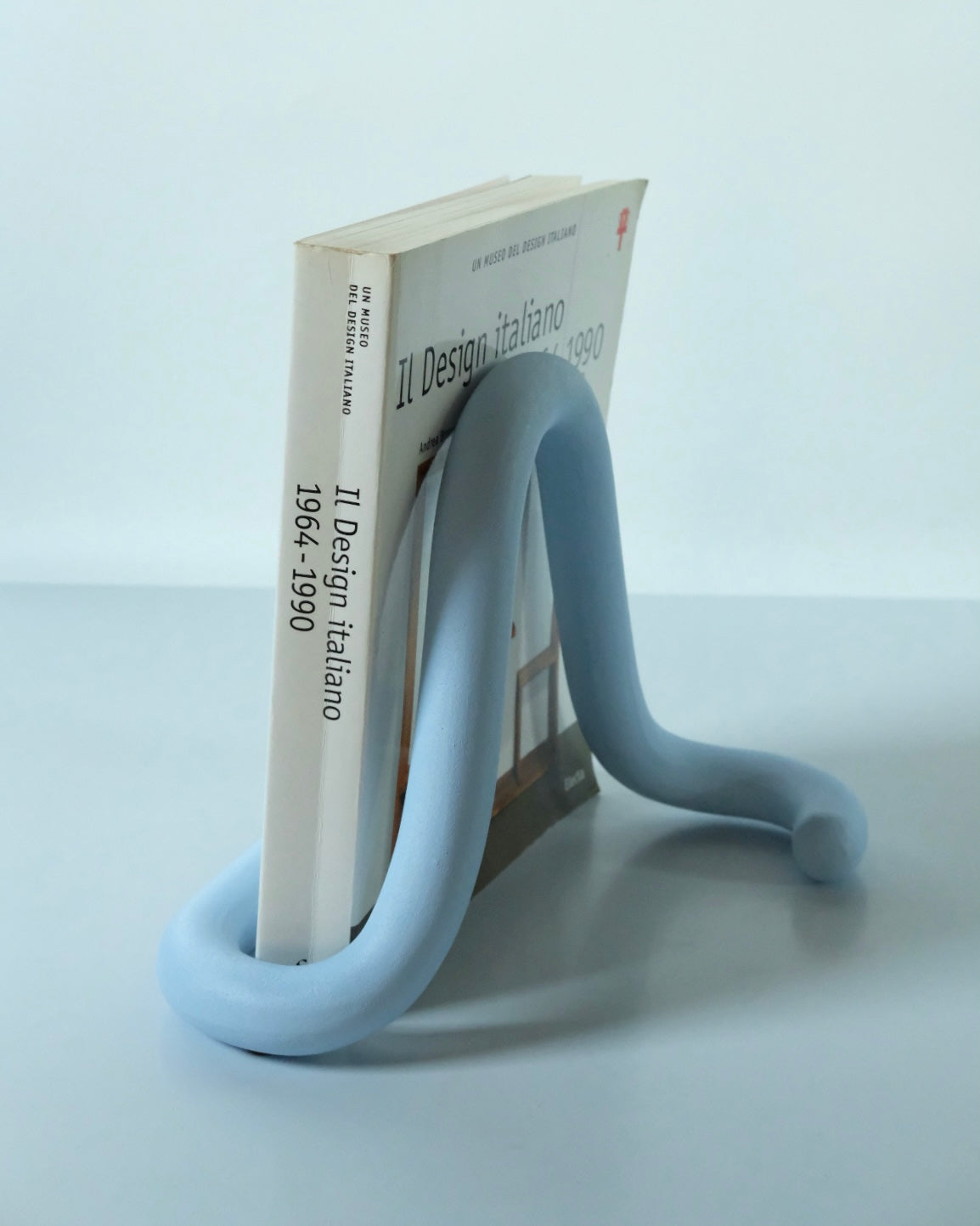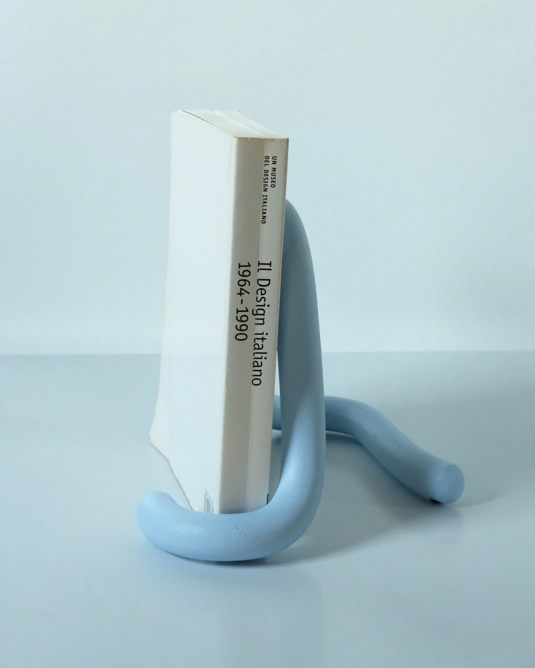 Hwachan LeeとYoomin MaengによるデザインデュオKUO DUOが、流動的でオーガニックなラインを想像して製作したBOOK WORM。従来の支えるためのブックスタンドとは異なり、直線で硬い本と棚の間に流れるダイナミックな感覚を表現しています。本がBOOK WORMと共に固定されることにより、本を含めた全体がある種のオブジェとして、自由な作品へと生まれ変わります。もともと粘土樹脂で手作りされたBOOK WORMを、WEKINOとの協働により、アルミニウムサンドキャスティングを使用し生産されました。サンドキャストにより特徴的なテクスチャーをもった「本の虫」です。