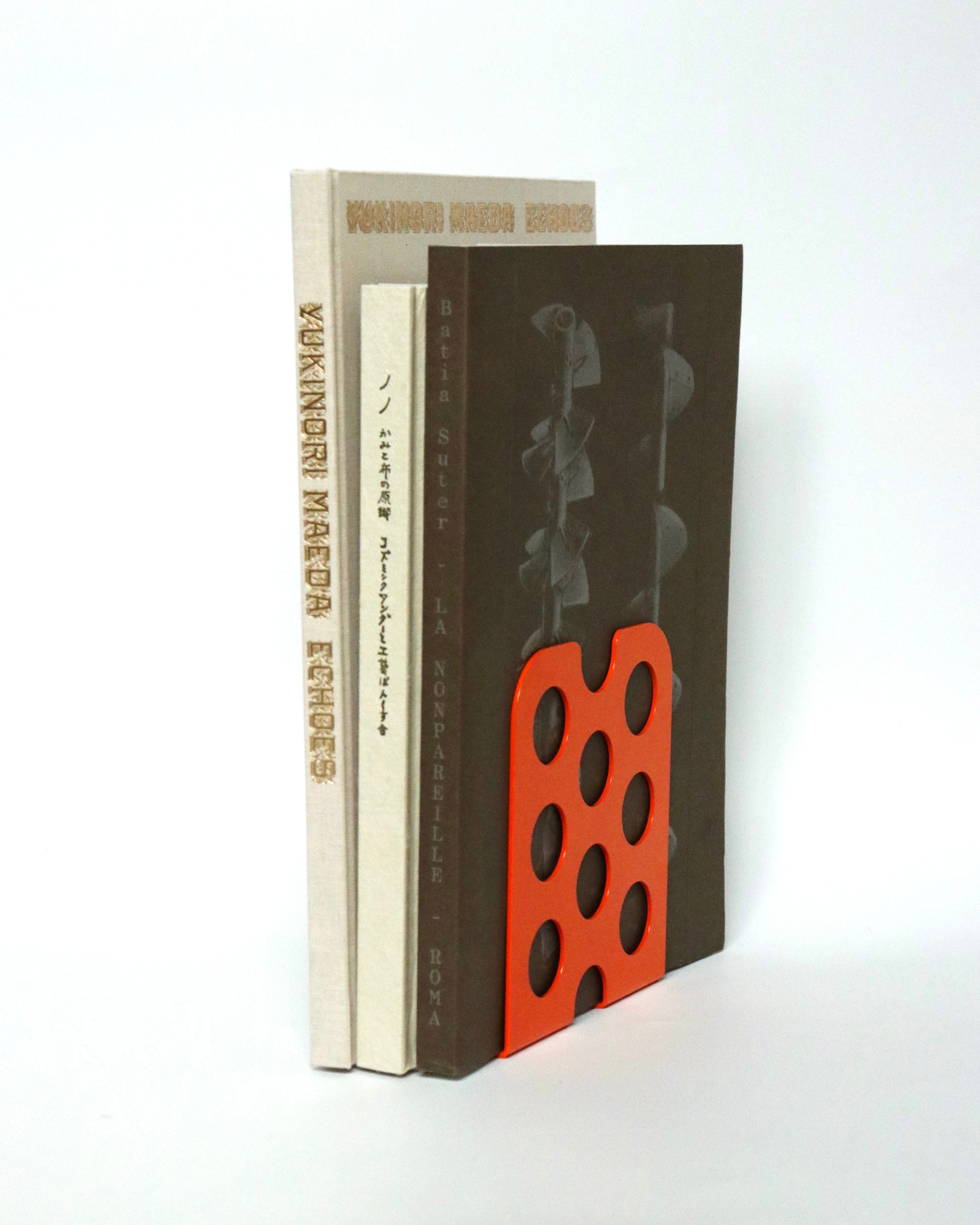 鮮やかなオレンジとチーズのような見た目が愛らしいブックスタンドです。見た目以上に重さがあるため、一つでも数冊立てかけられる仕様です。ナイキやカーハットの内装を手がけるロンドンを拠点にするデザイナーOliver Hawkesによるデザイン。
