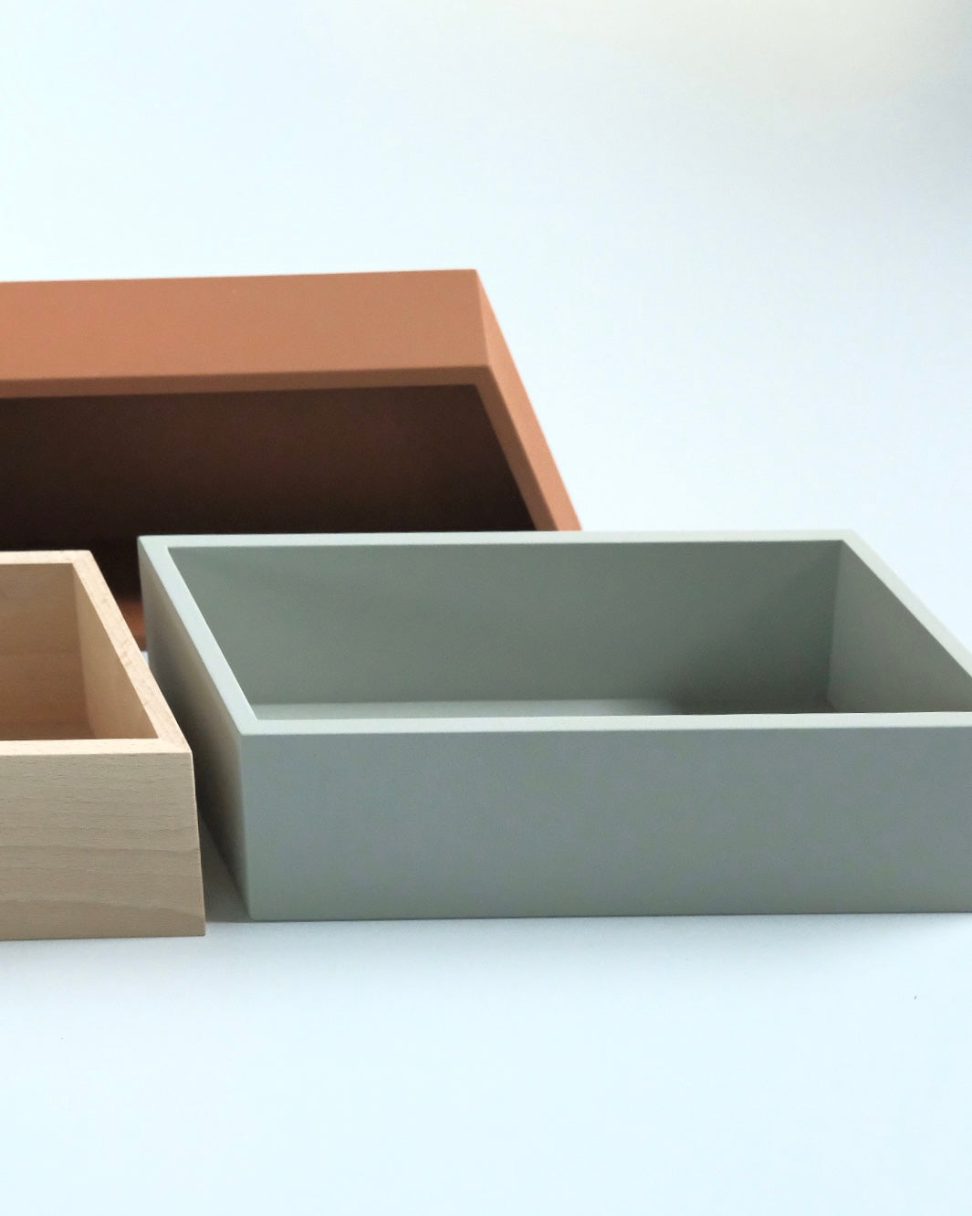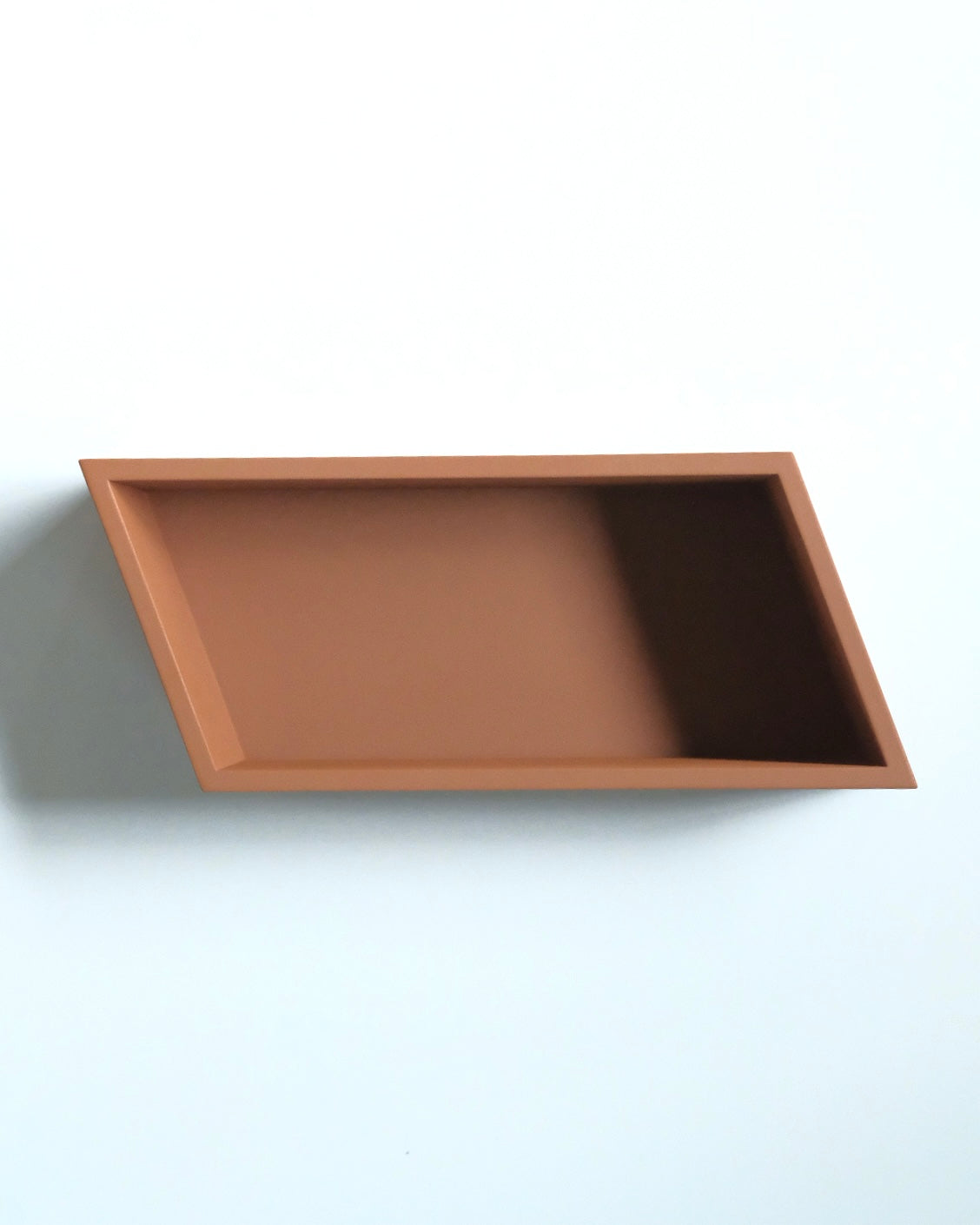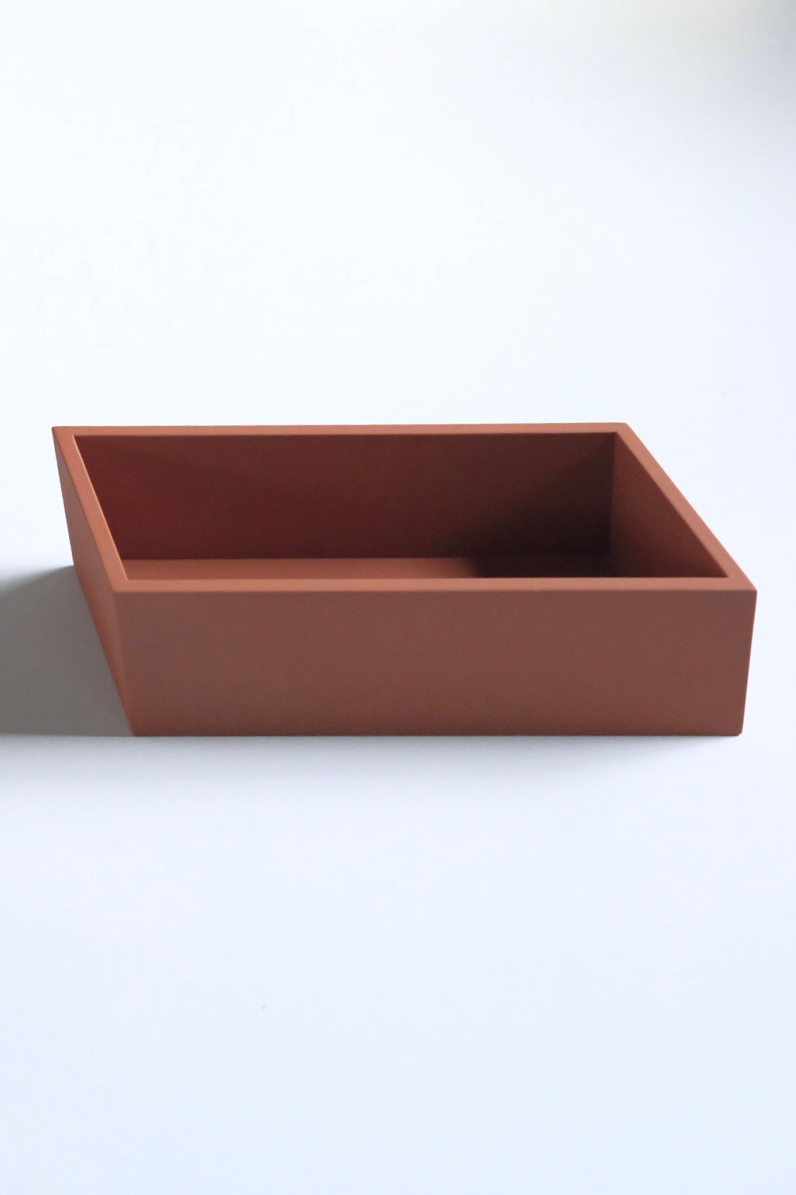 パースを崩すことで、本来直角に見えるはずの角物に違和感を与え、BOXのみが空間を切り取られたような不思議な佇まい。適当に物を入れても、この違和感が額縁として成り立つため、まとまって見える抽象的な箱です。ふと目に入った時、この佇まいの美しさにハッとさせられます。