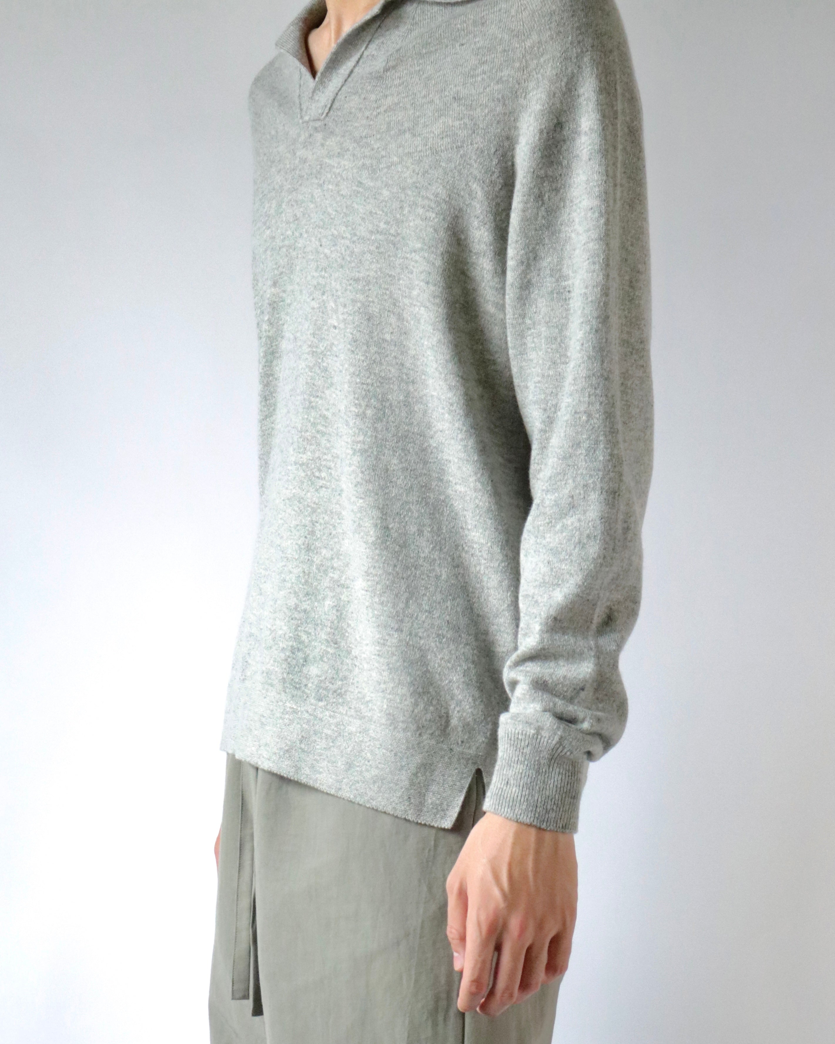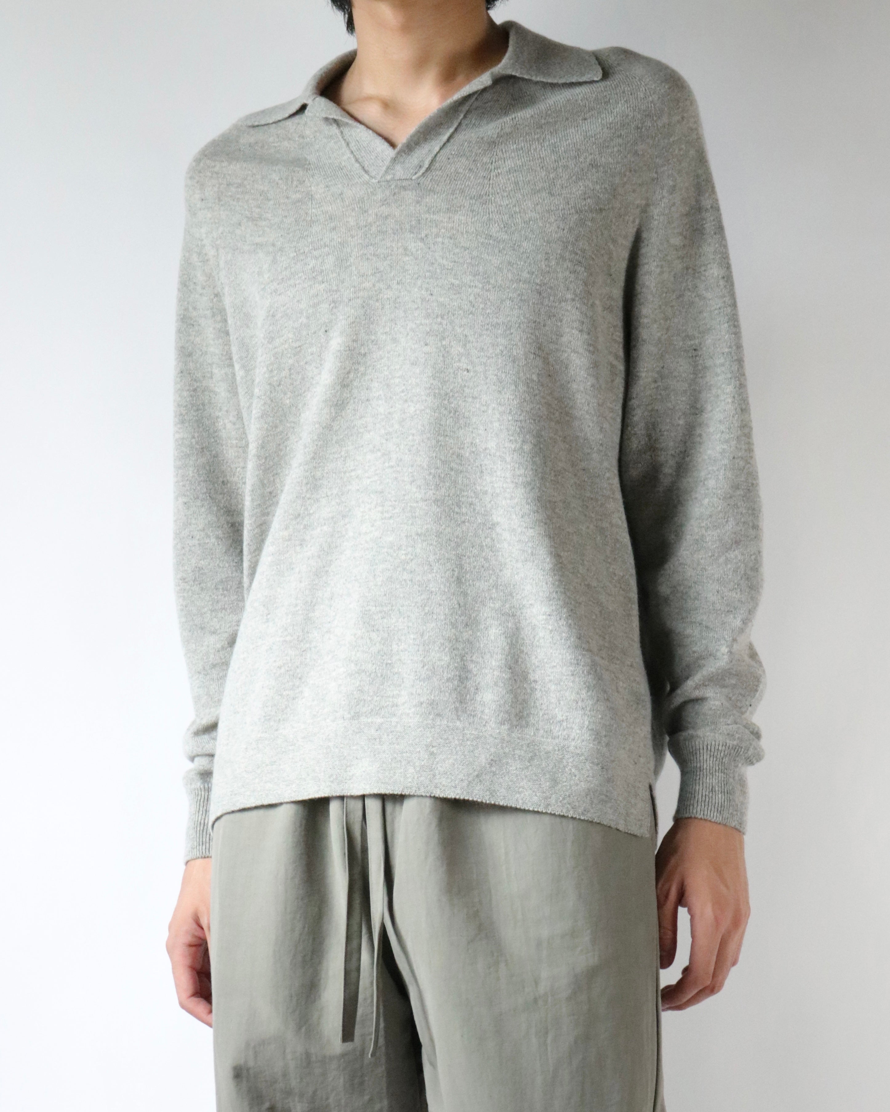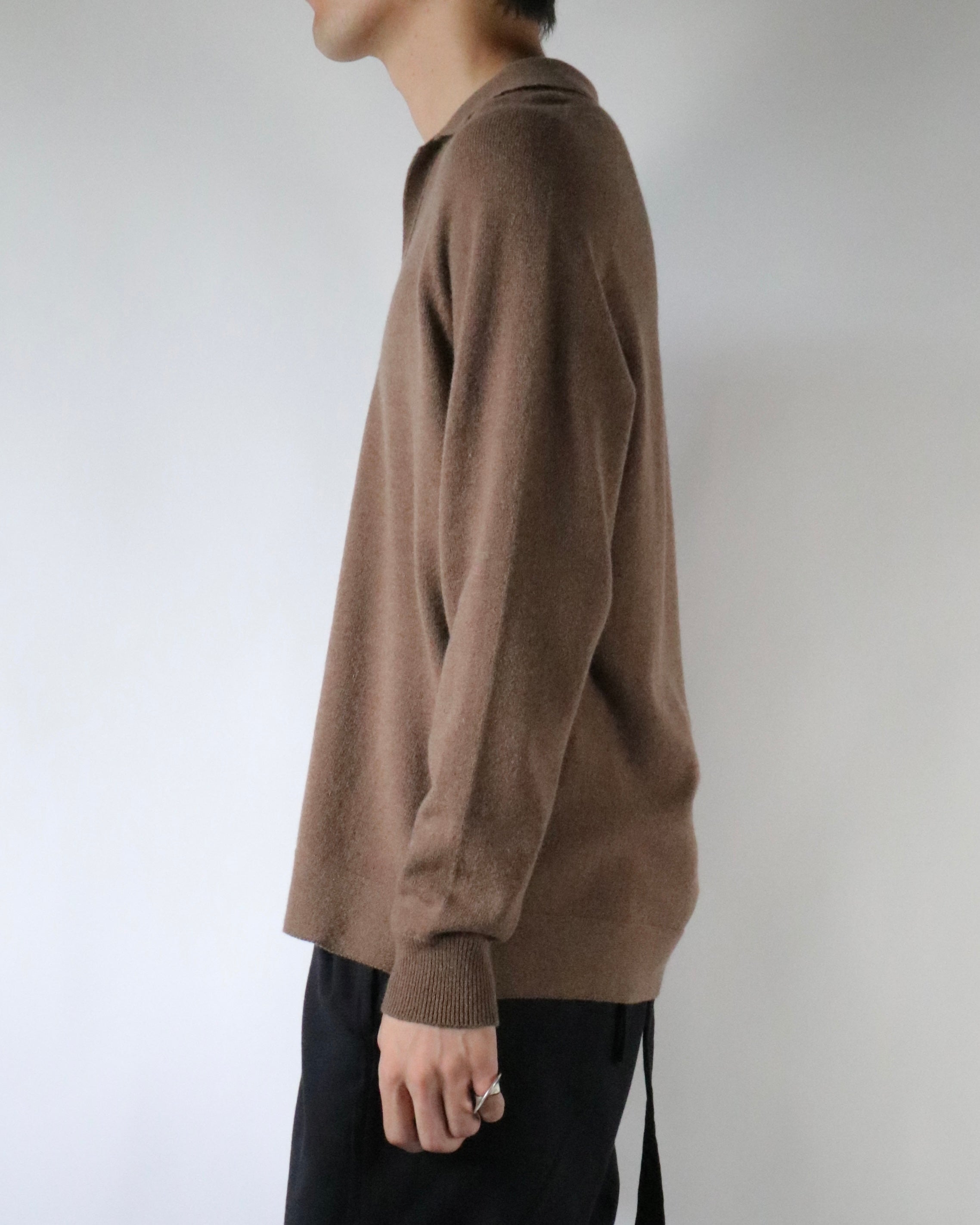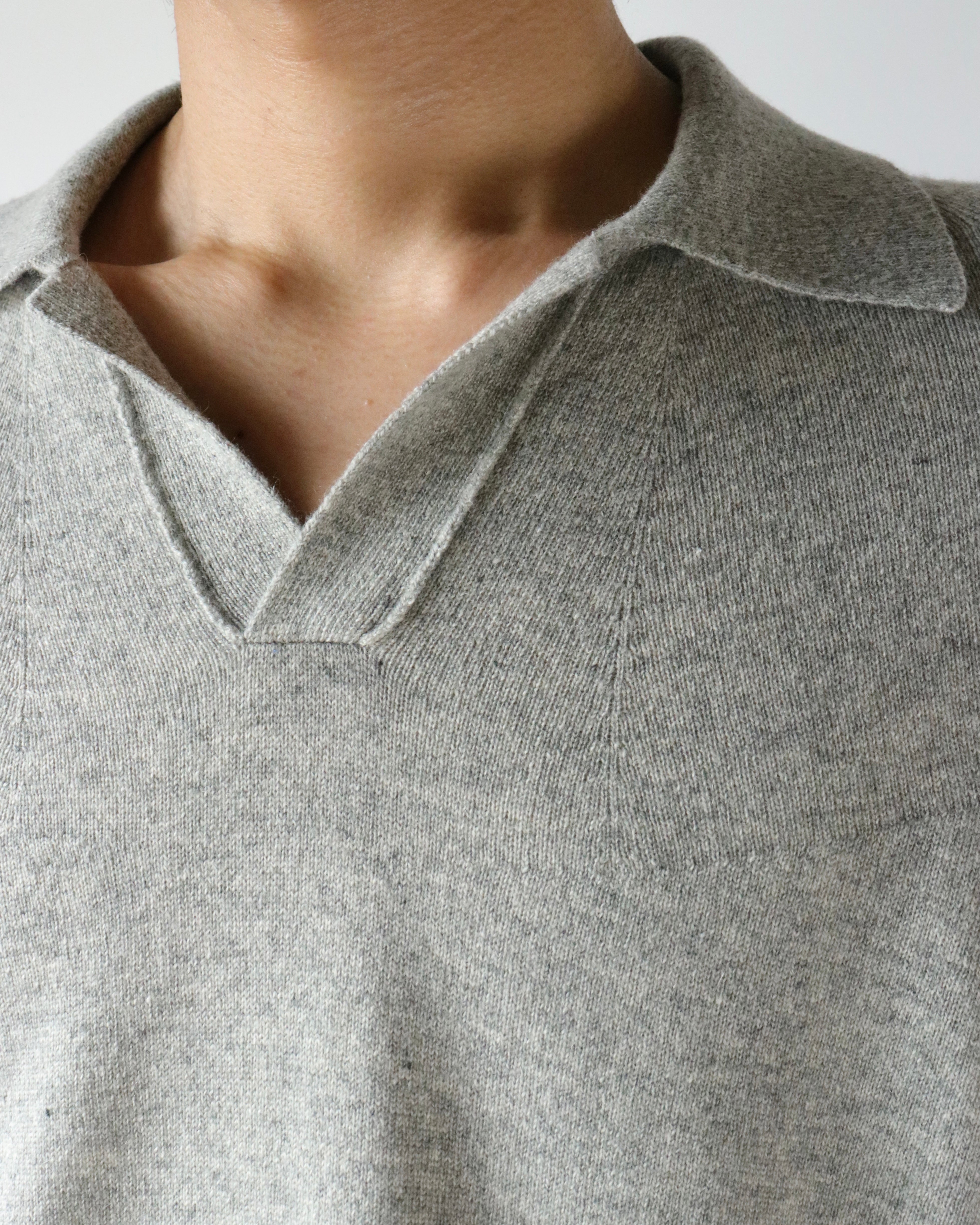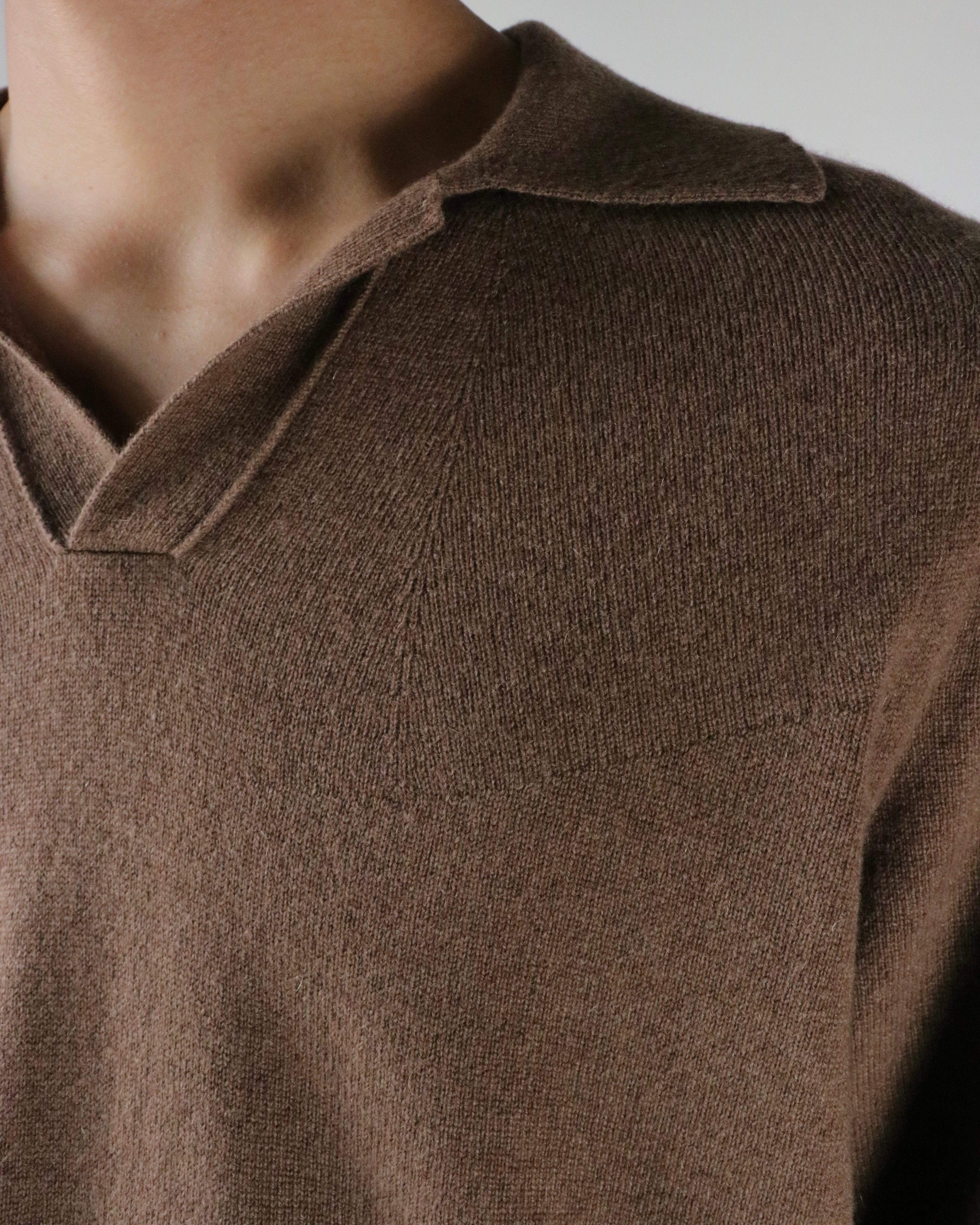 ホールガーメントで縫い目が少なく着心地に優れたニットポロセーター。