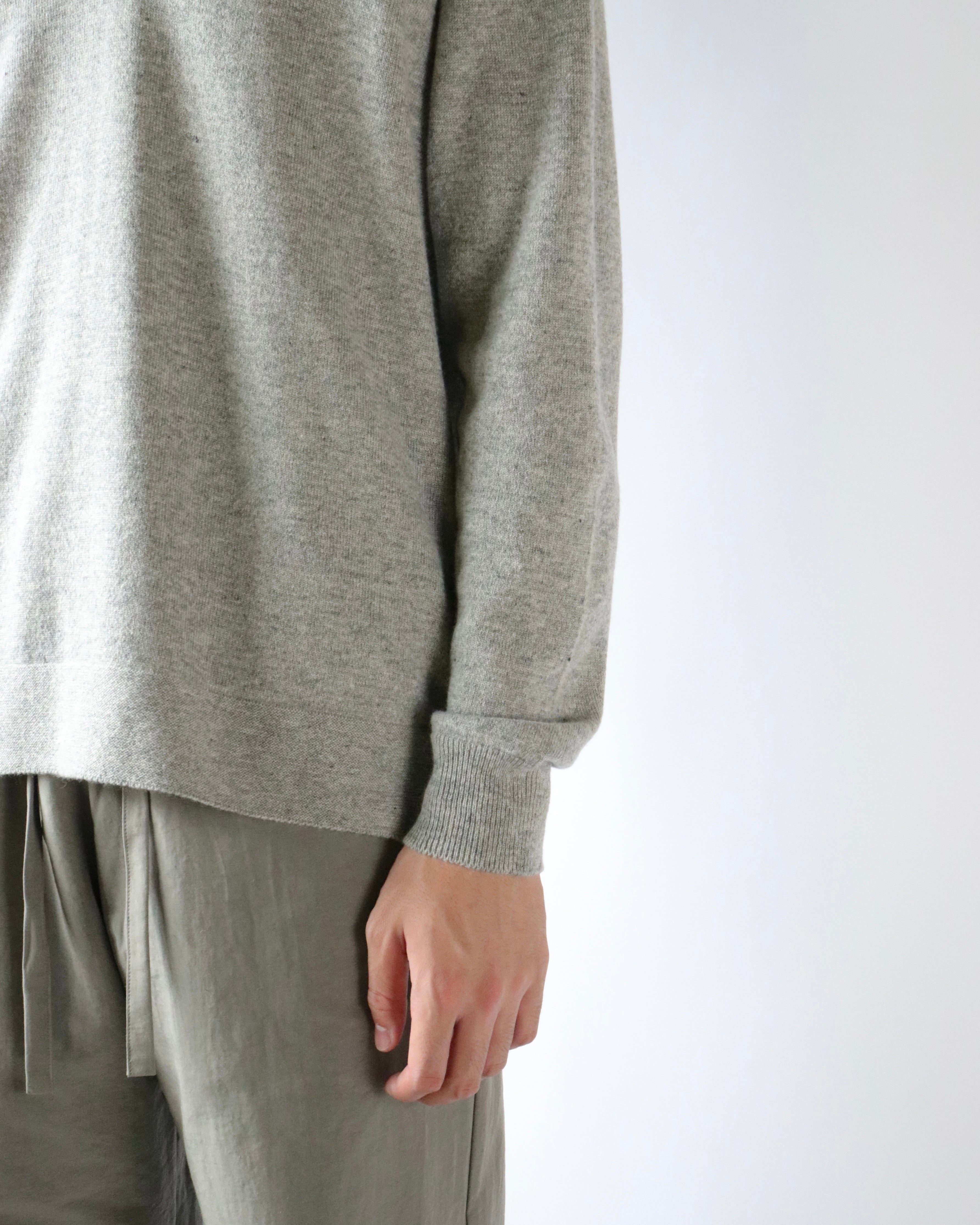 ネック周りは放射状に編み目が切り替えられ、細部に意匠を凝らしたニットウェアです。
