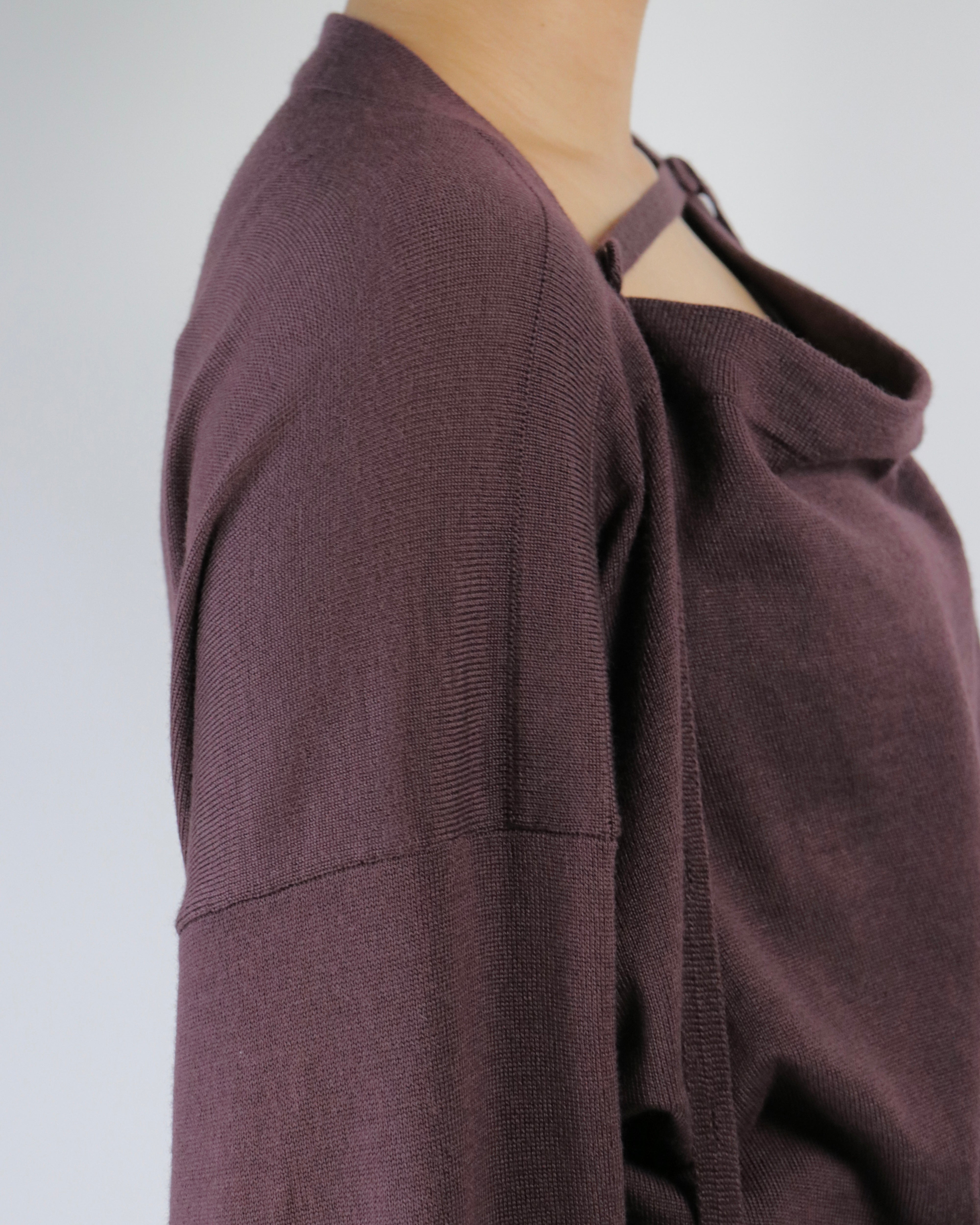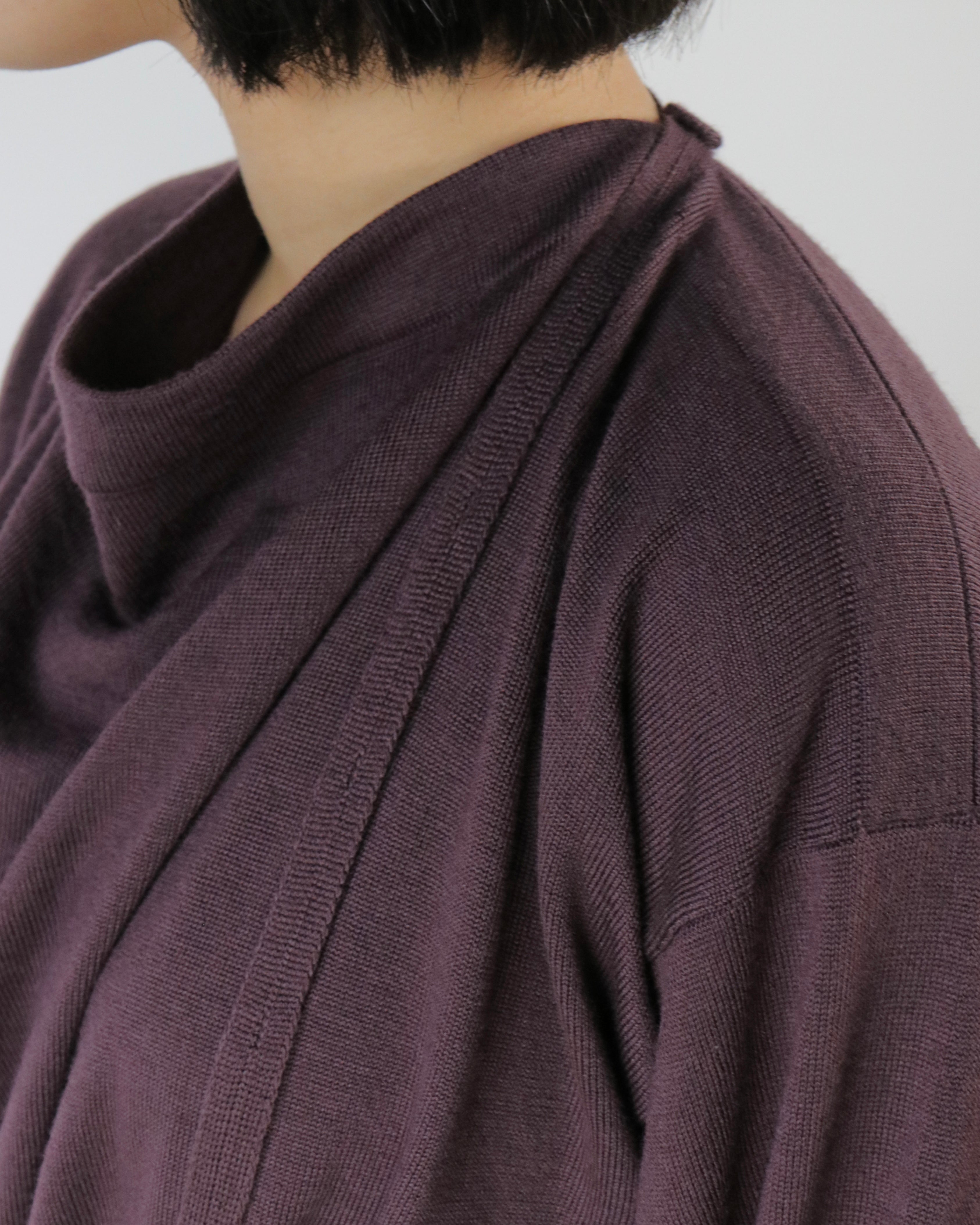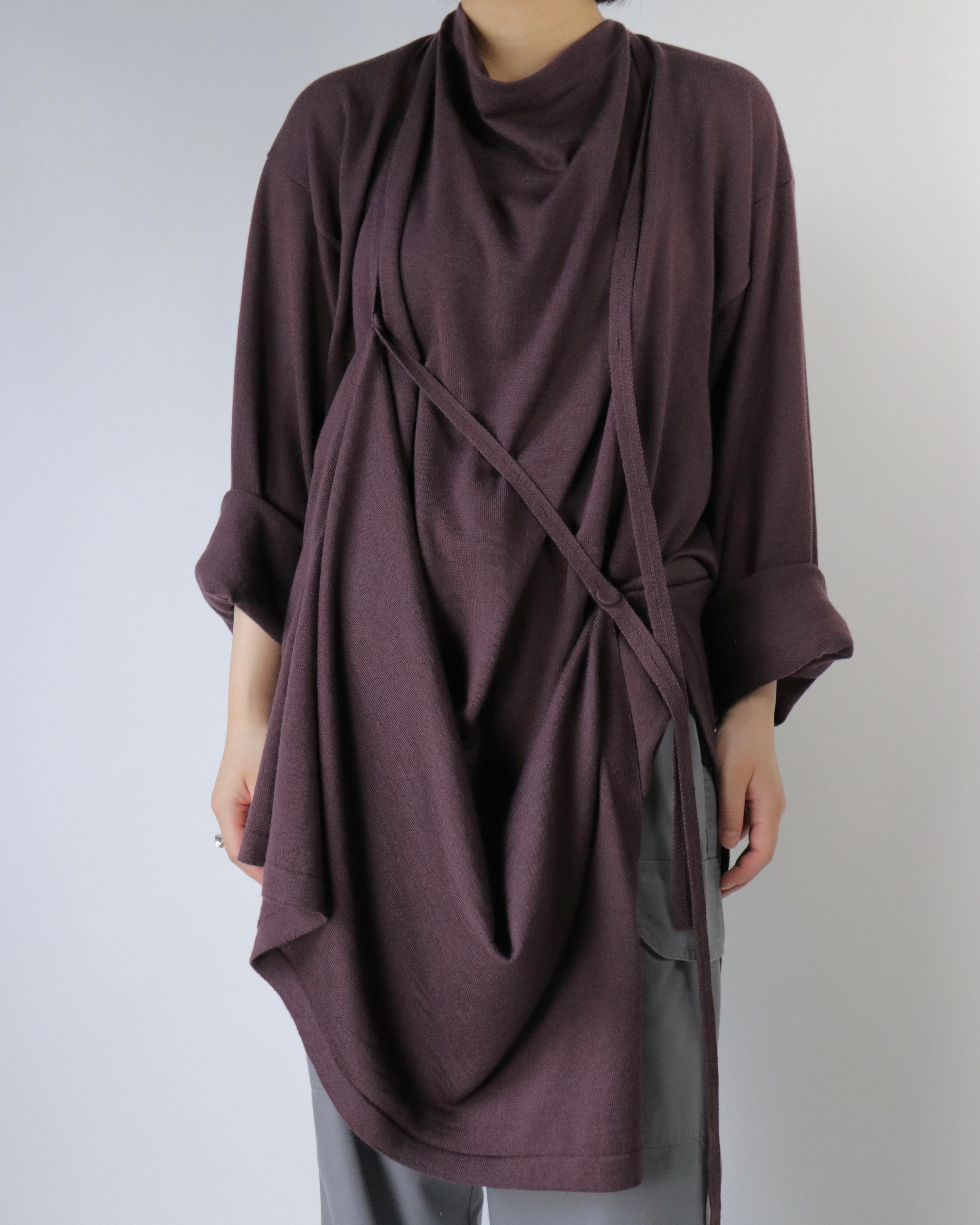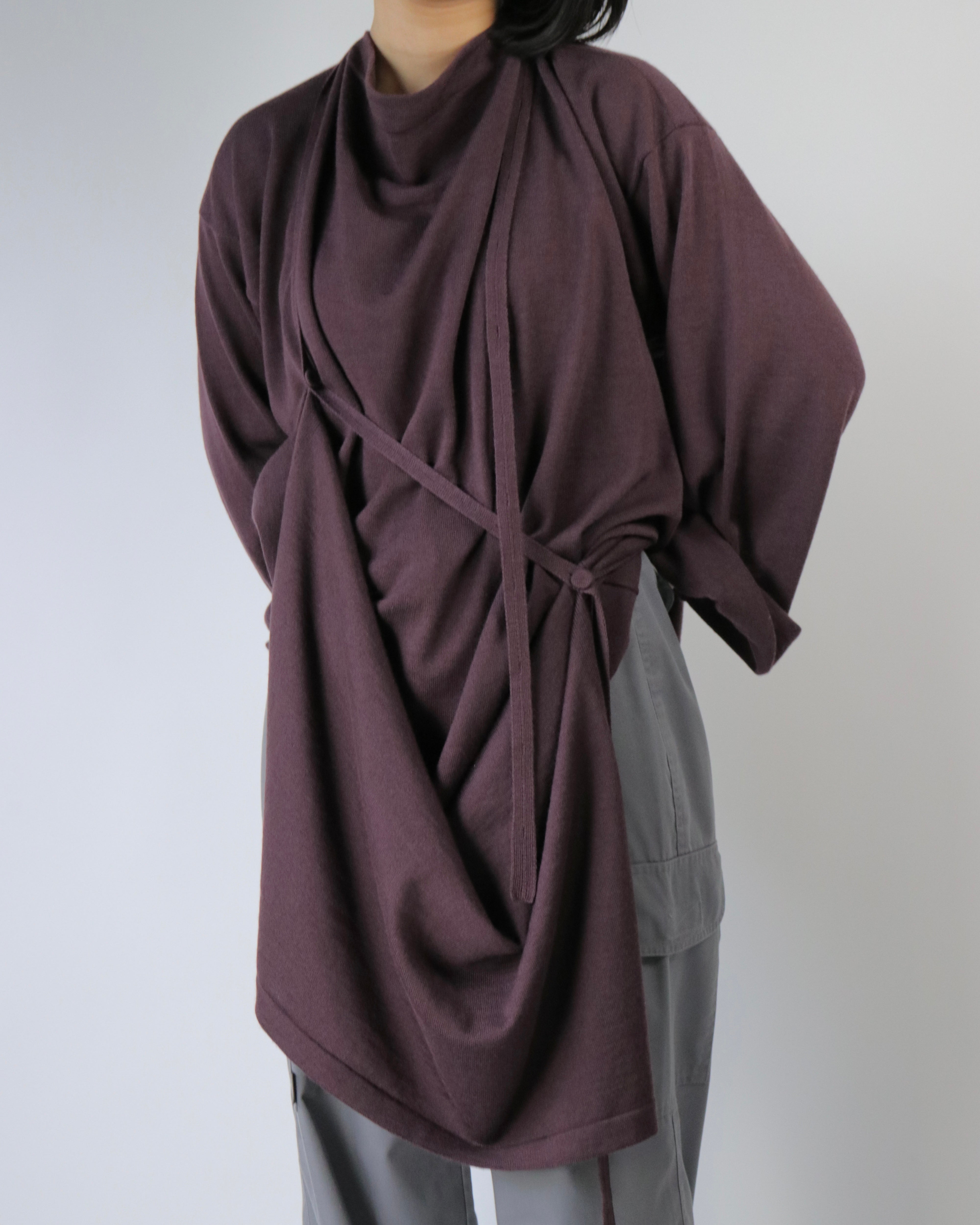 メリノ種のヴァージンウールのみを使ったドレープ感の心地いいニットドレス。共地のドローコードを使って自由にシルエットを変化させることができるので、何通りものスタイリングを楽しんでいただけます。