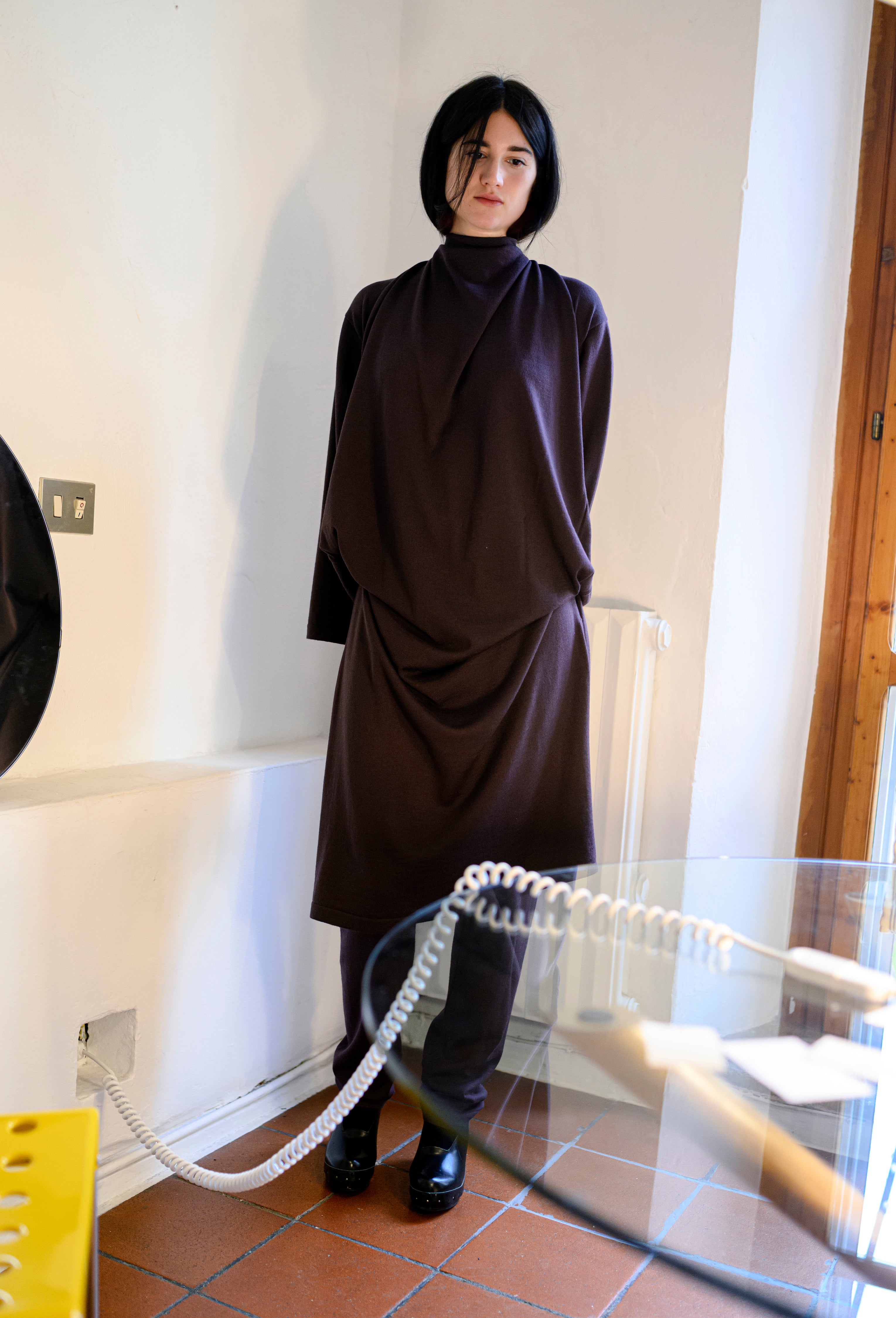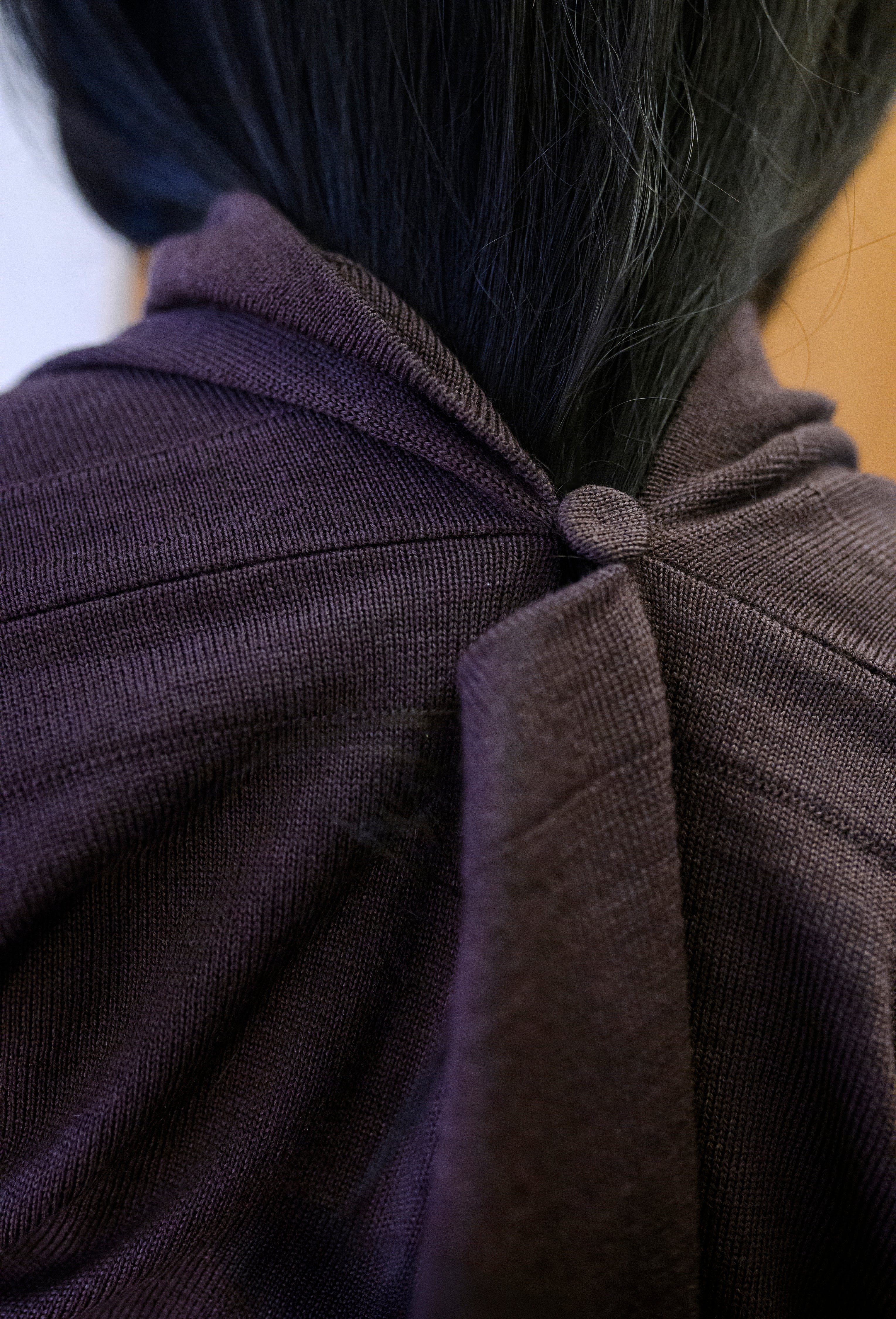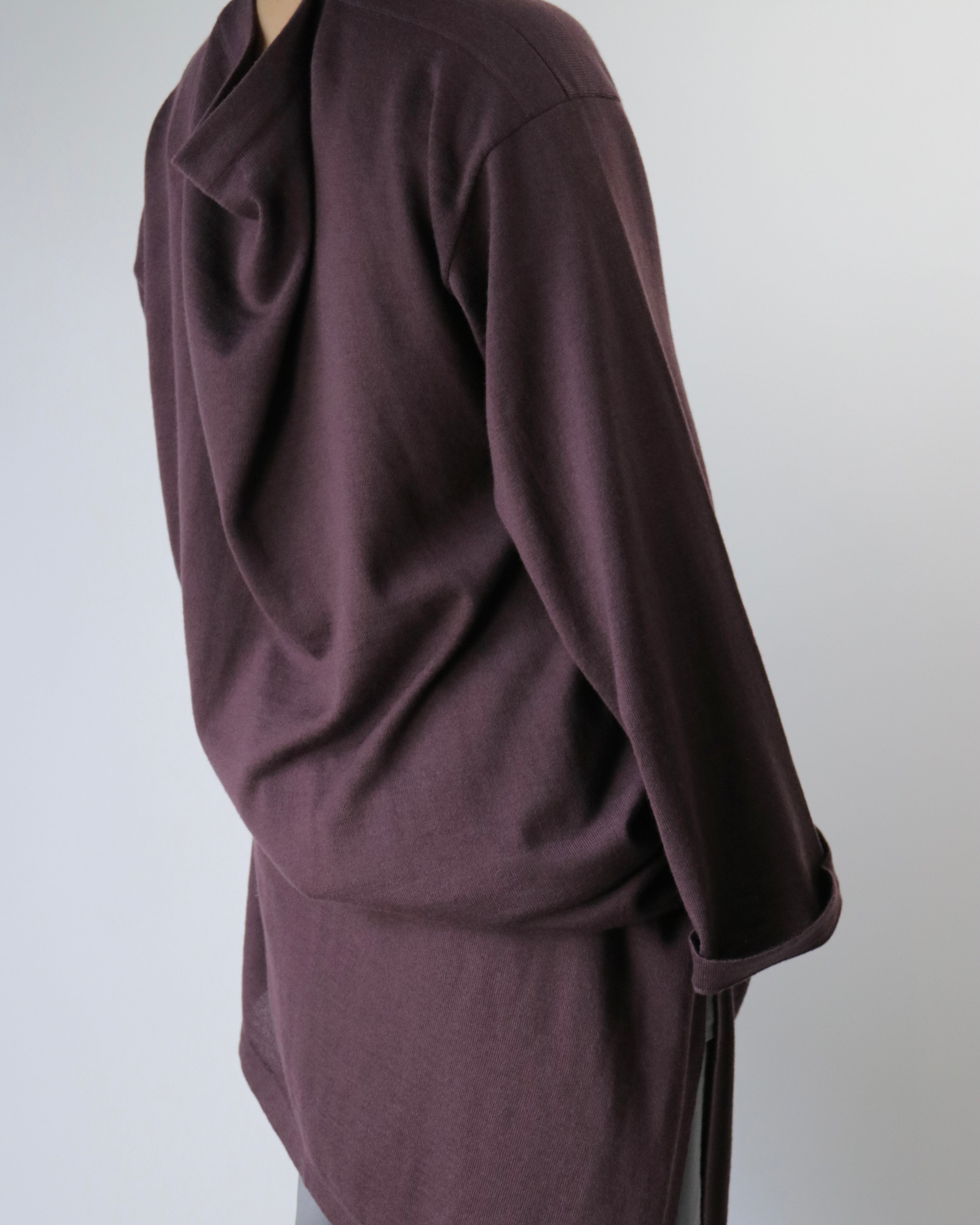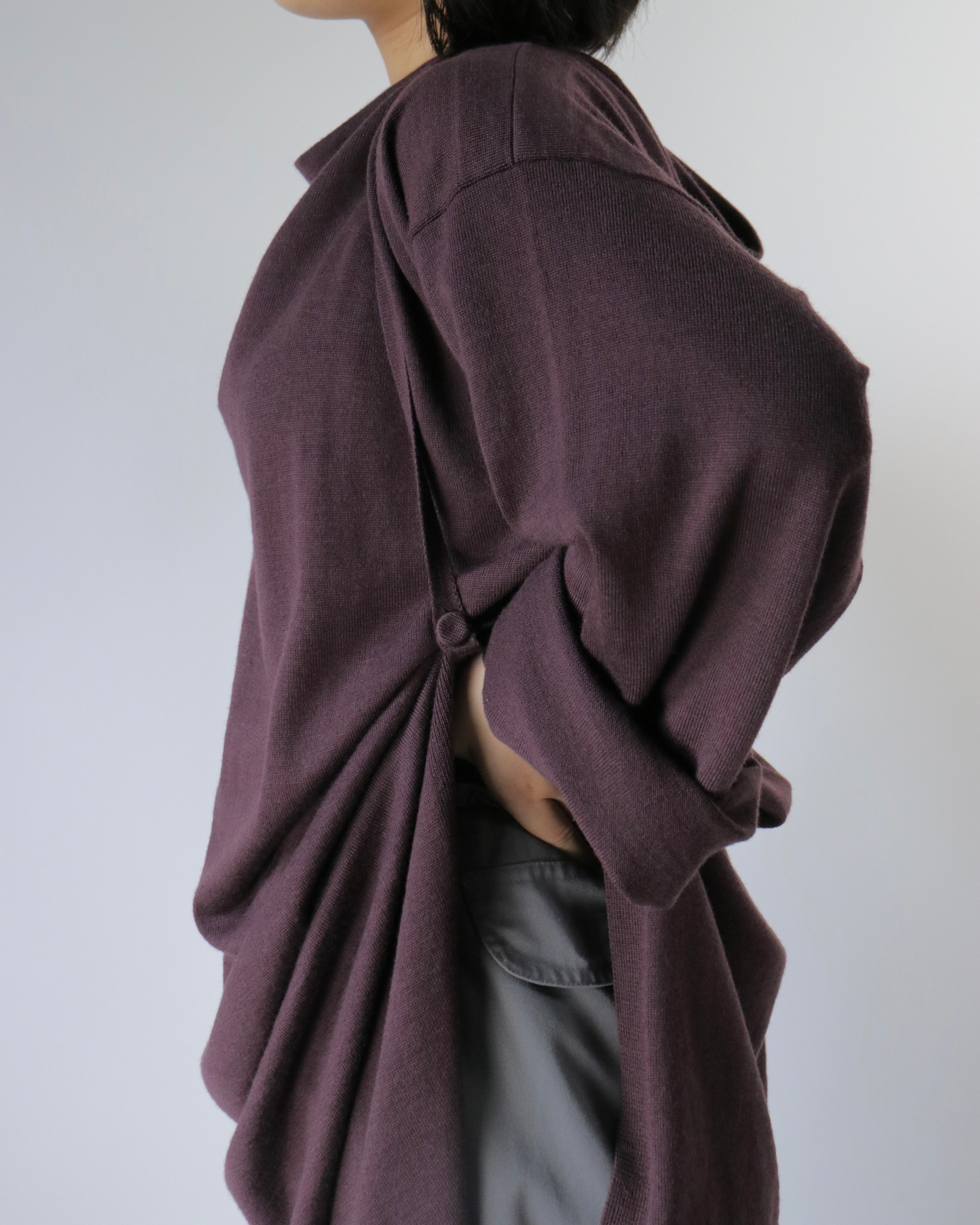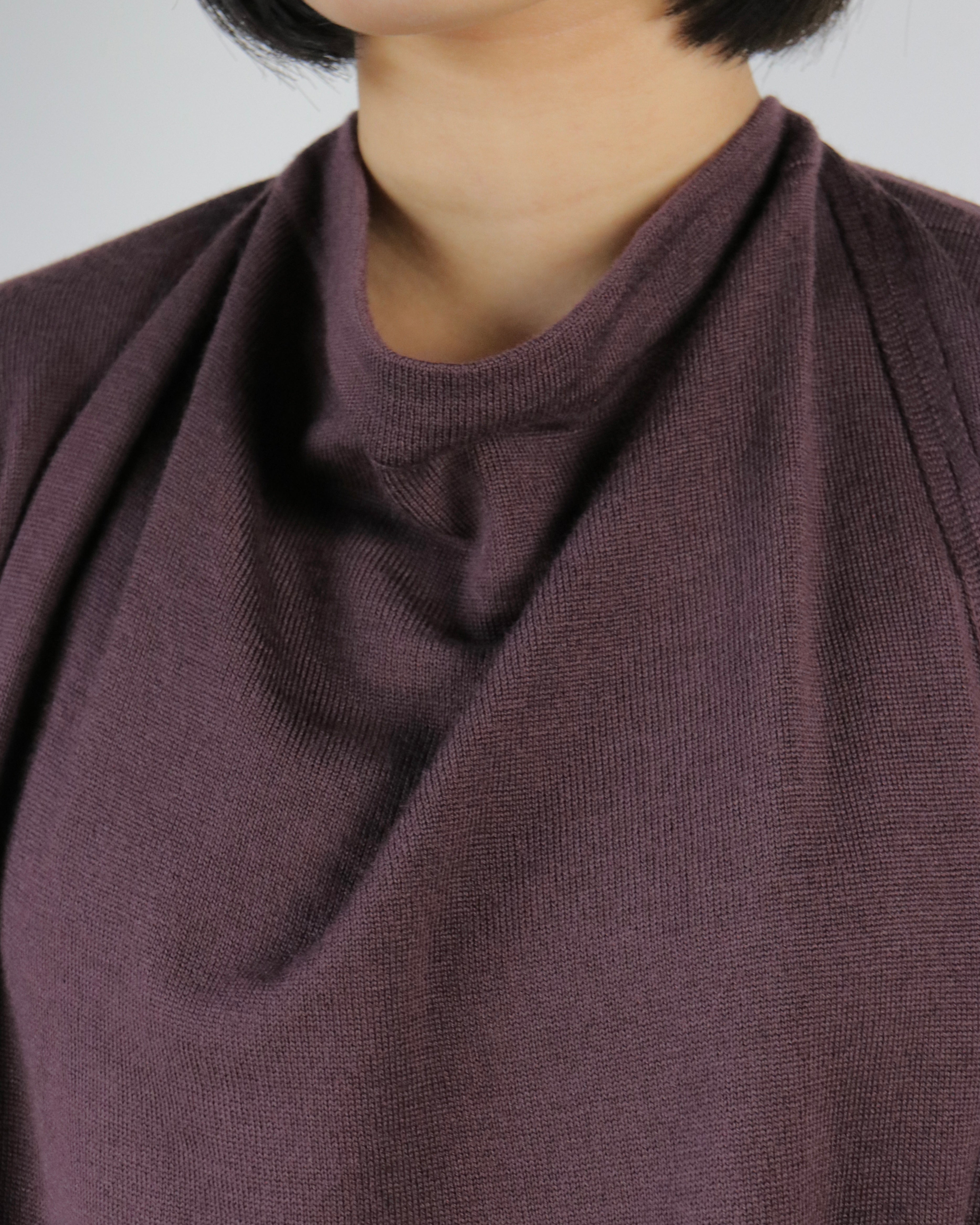 メリノ種のヴァージンウールのみを使ったドレープ感の心地いいニットドレス。共地のドローコードを使って自由にシルエットを変化させることができるので、何通りものスタイリングを楽しんでいただけます。