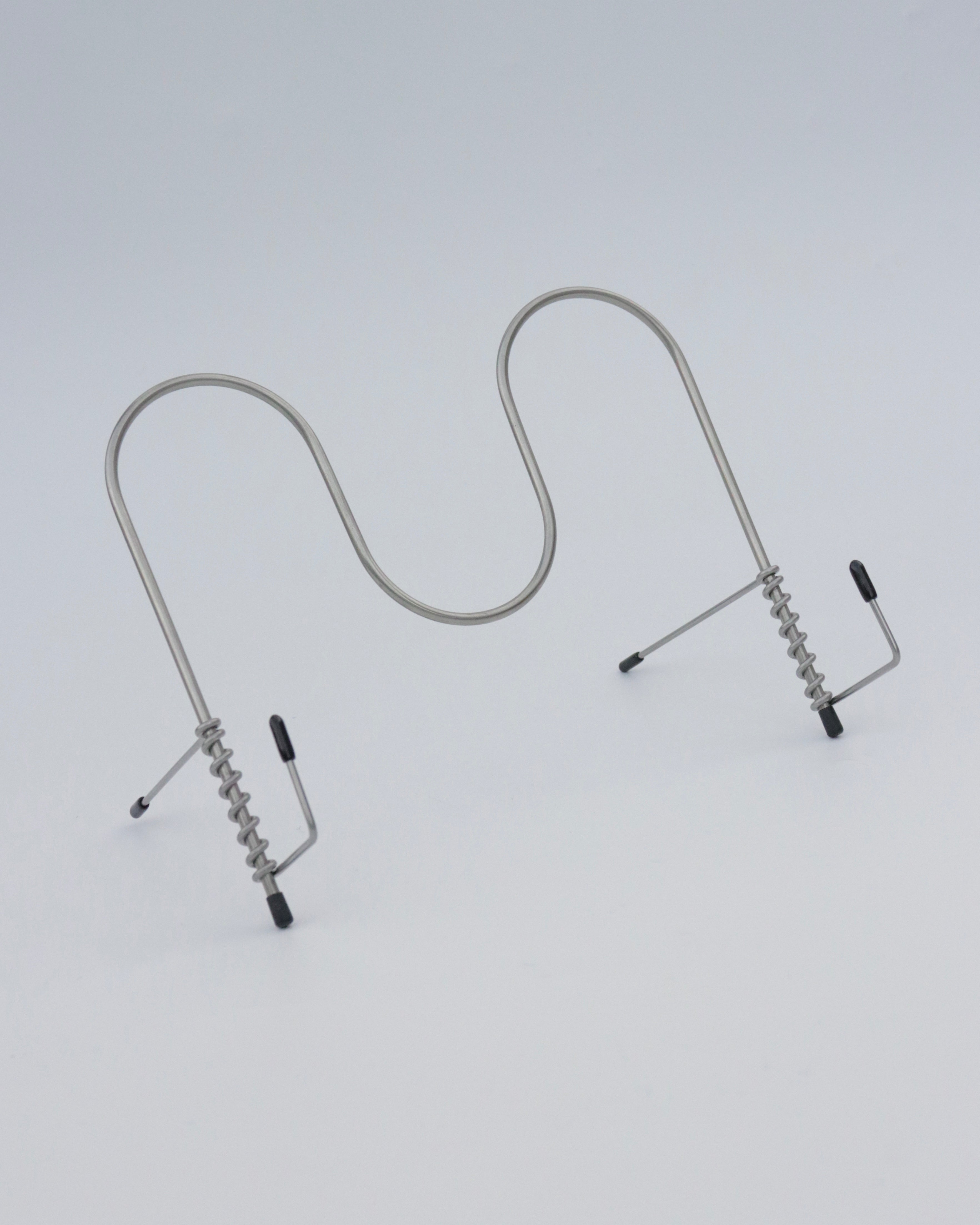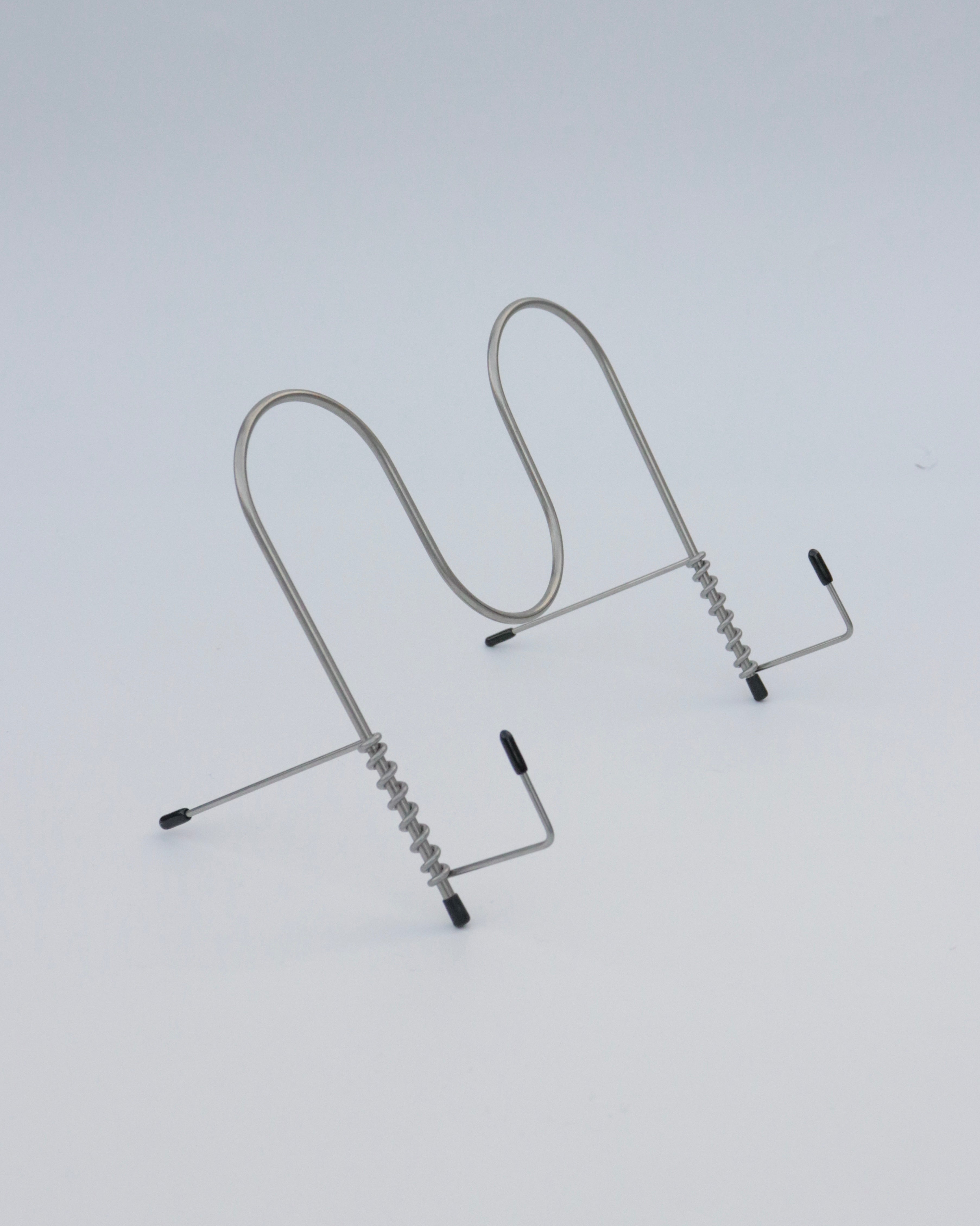 折りたたみ式のブックスタンド。元は料理の際にキッチン周りを快適に過ごすために制作された作品です。収納の際は、折りたたみことで、キッチン用品と共にフックに掛けることも可能です。また一般的なブックスタンドとして、iPadスタンドととしてお使いいただけます。