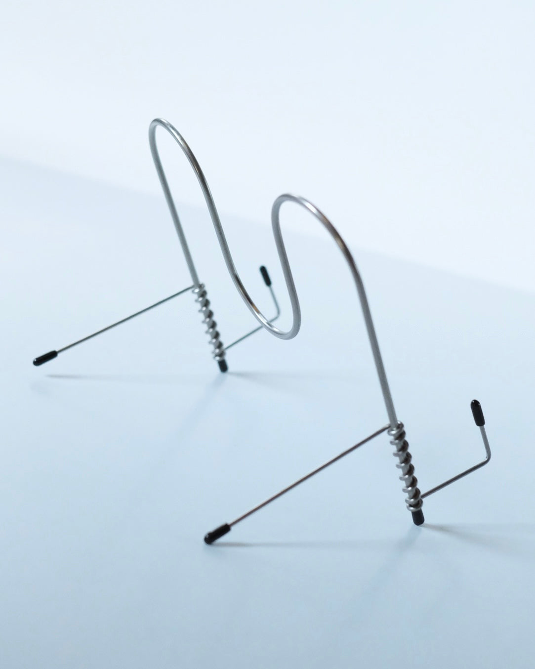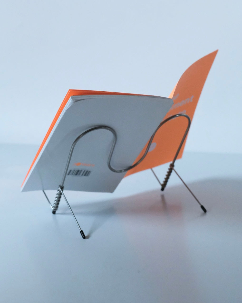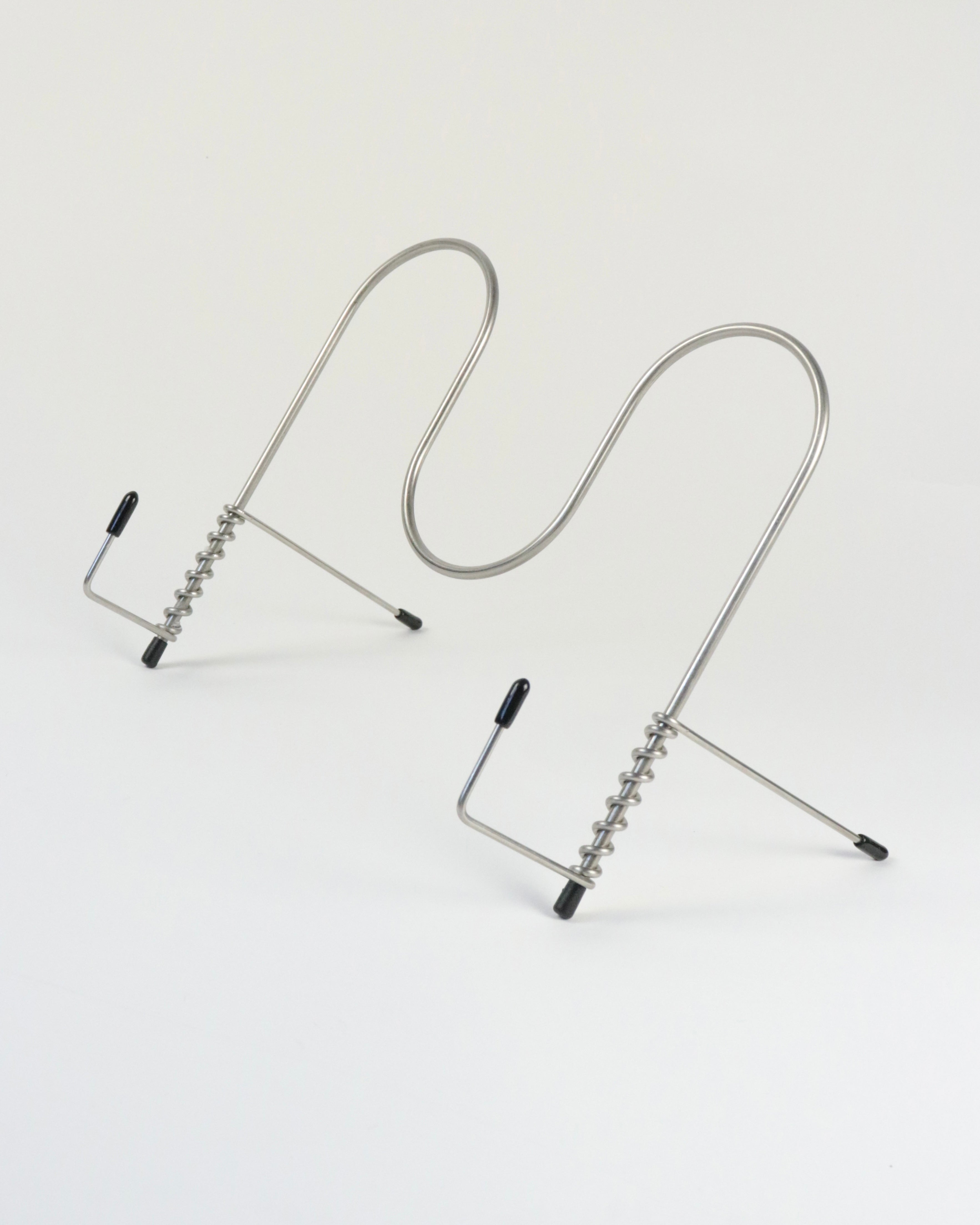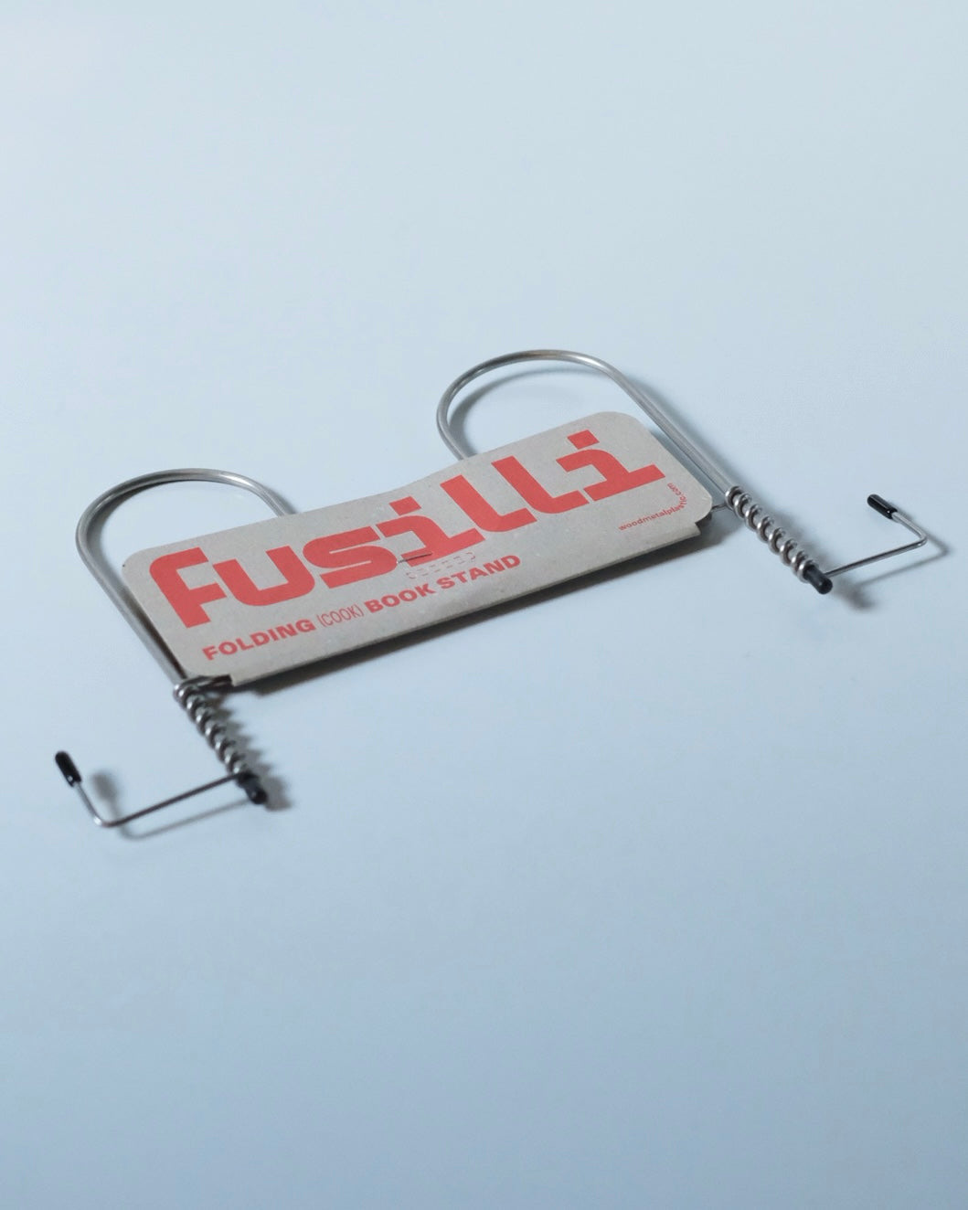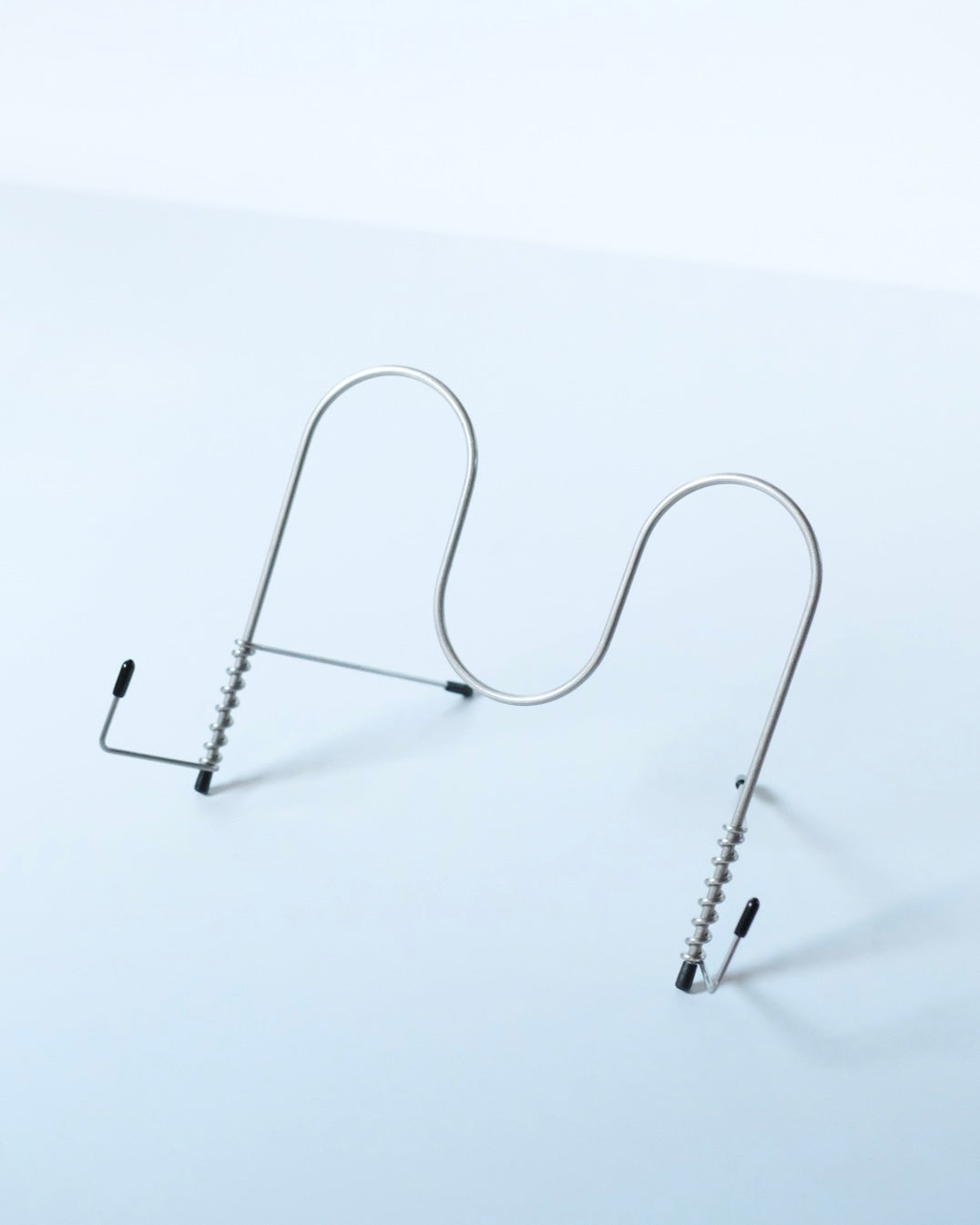 折りたたみ式のブックスタンド。元は料理の際にキッチン周りを快適に過ごすために制作された作品です。収納の際は、折りたたみことで、キッチン用品と共にフックに掛けることも可能です。また一般的なブックスタンドとして、iPadスタンドととしてお使いいただけます。