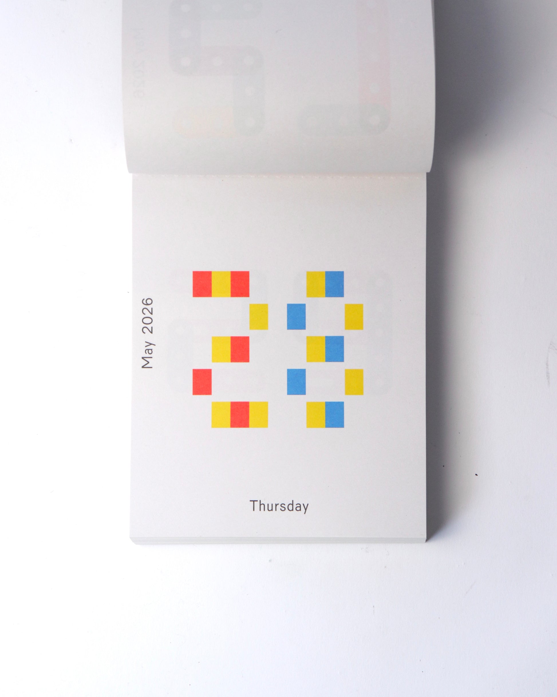 オランダを代表するグラフィックデザイナー、カレル・マルテンス(Karel Martens)が毎年手がける日めくりカレンダー2026年版。カレルが長年続けている、拾い集めた金属の工業部品などを版にして印刷するモノプリントのシリーズを用いて、365日すべての日付がデザインされています。めくったシートの裏面にその日の出来事を記録する、誕生日の人にその人の日にちのシートをプレゼントするのも良いと思います。