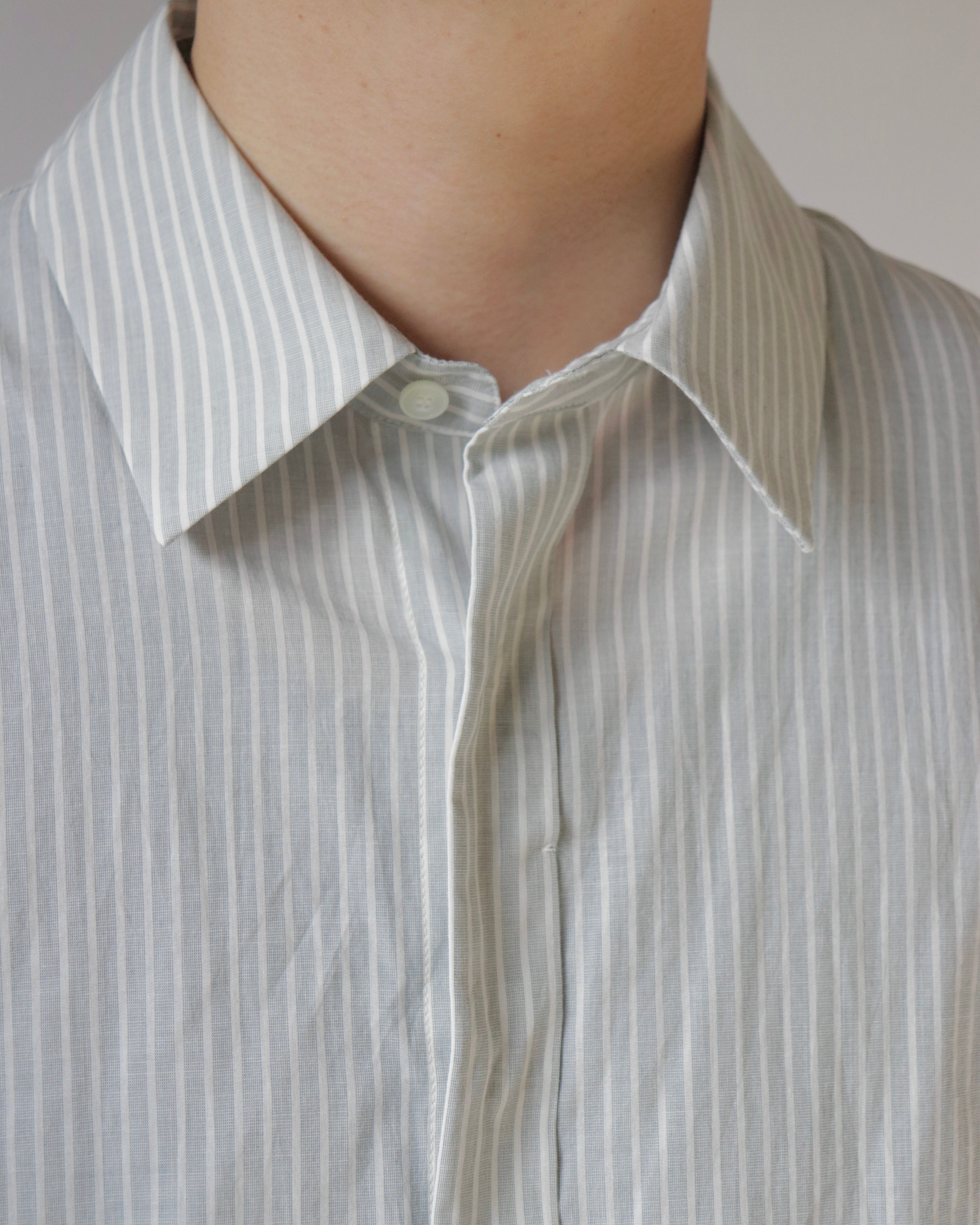 トラディショナルなボックスシルエットのストライプシャツ。肌当たりが良く