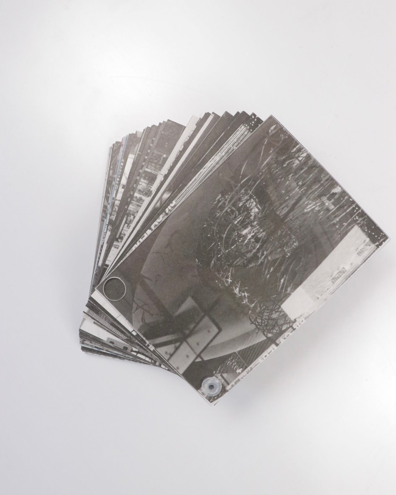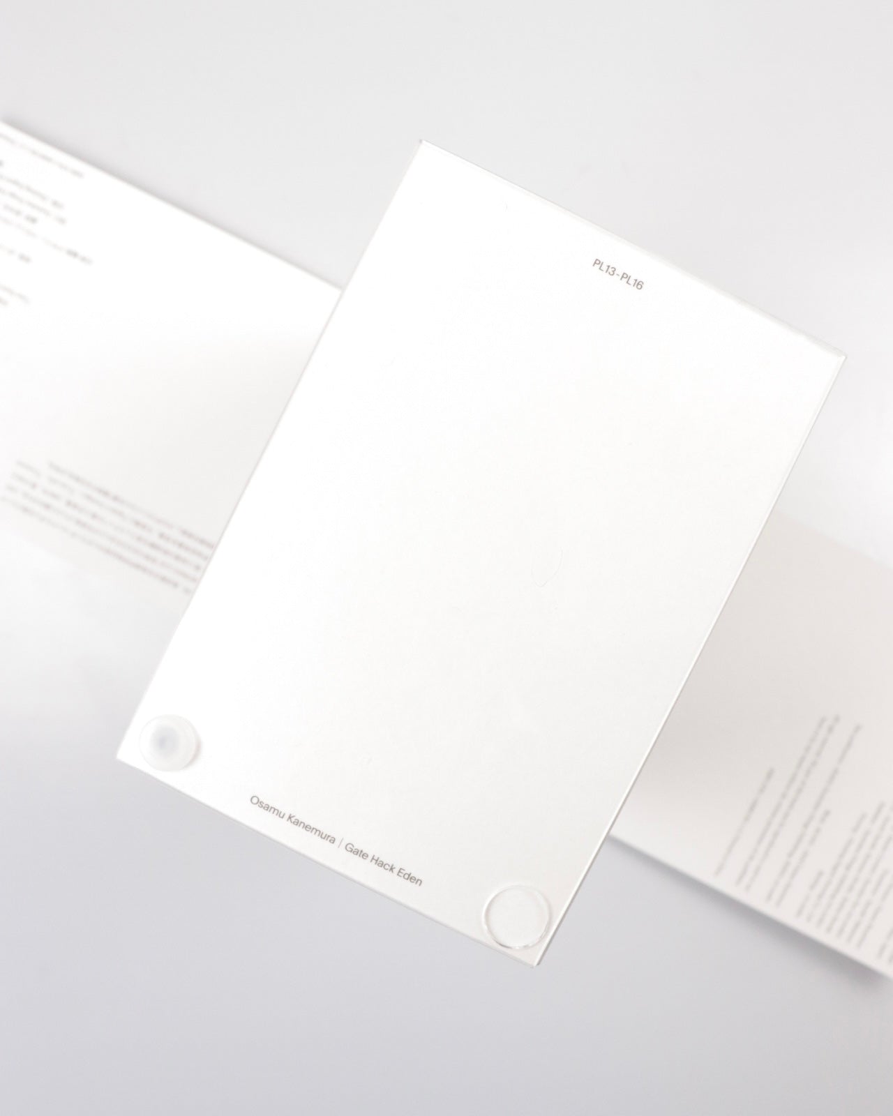 「かつて存在したものの痕跡によって描かれた屹立する廃墟の風景は、今なお存在するもの、そしてこれからも存在し続けるものの本質を暴き出す。本展覧会に合わせて出版される作品集『Gate Hack Eden』は、何百枚もの写真、ドローイング、映像のスチール写真をすべて1000個の均質な断片に分解したものから構築されており、写真家・金村修の実践を実体化したものである。金村は「使用される媒体は痕跡や断片の集積によって形成され、対象の再現という実用性から解放された時点でその本質が明らかになるのだ」と説明する。新たに形成された遠景(distance)から立ち上がる巨大な巨大な建造物(edifice)のように、本来の意図から切り離されたイメージは、金村自身が築いた思考体系(edifice)と並走する。」-ori.studio