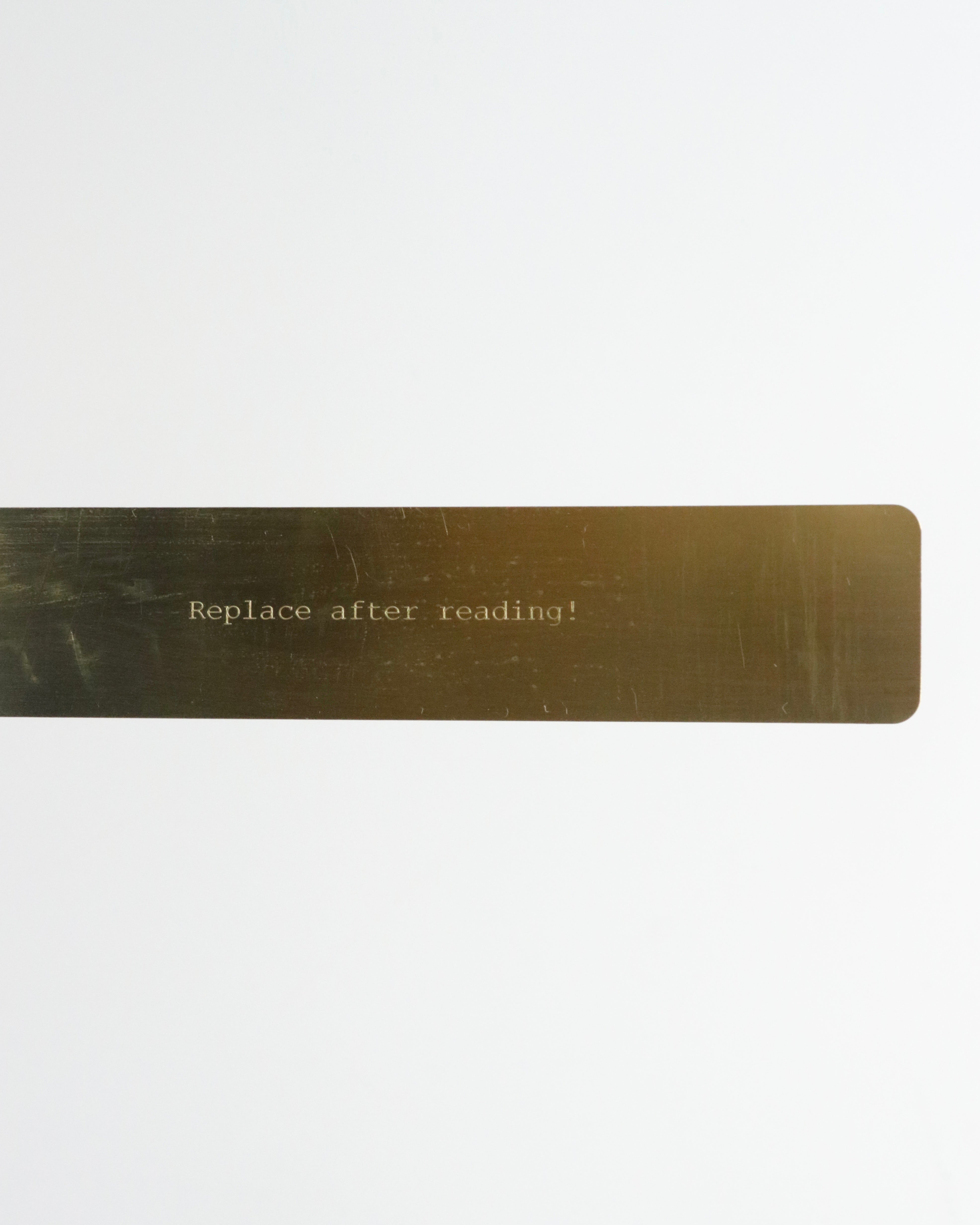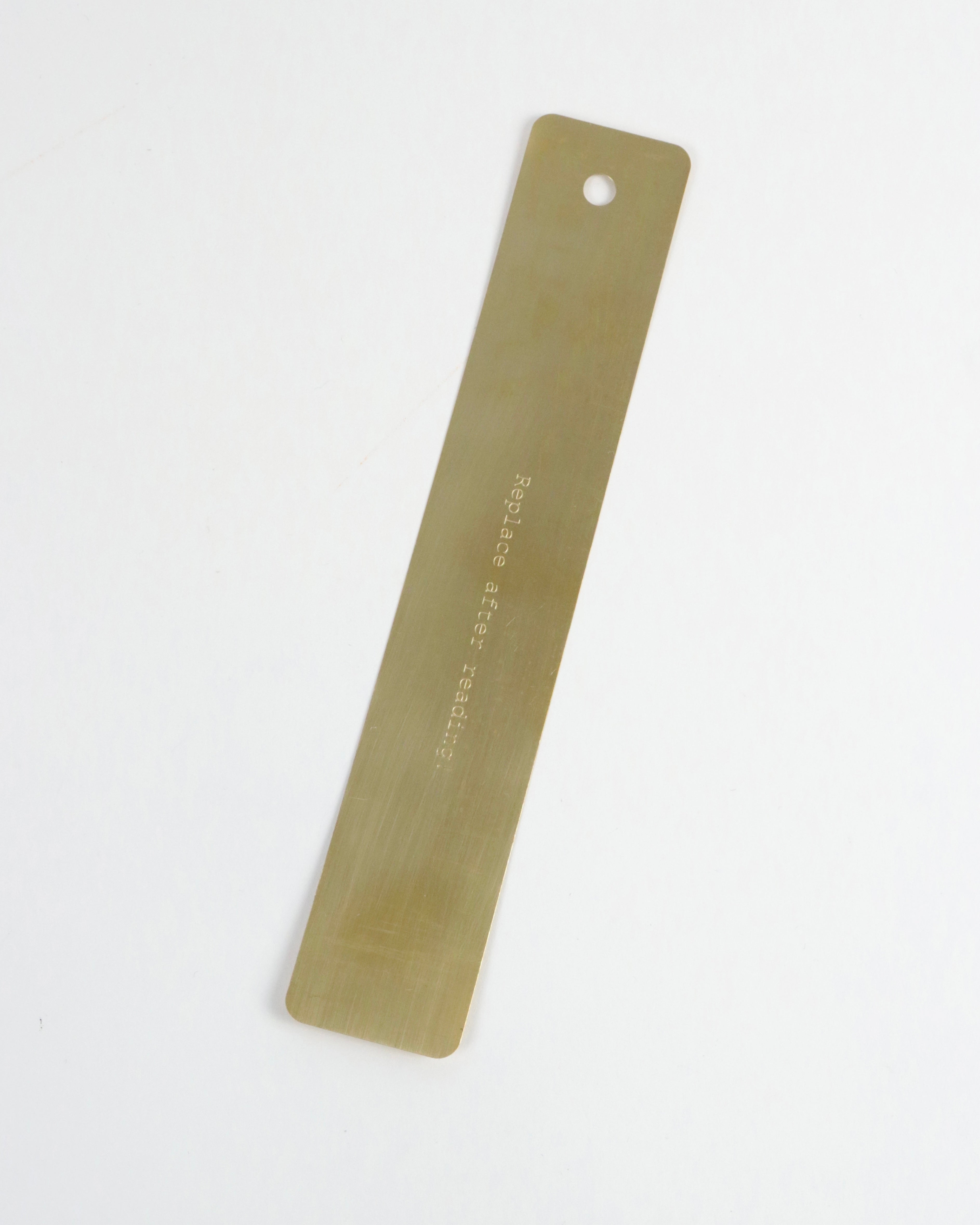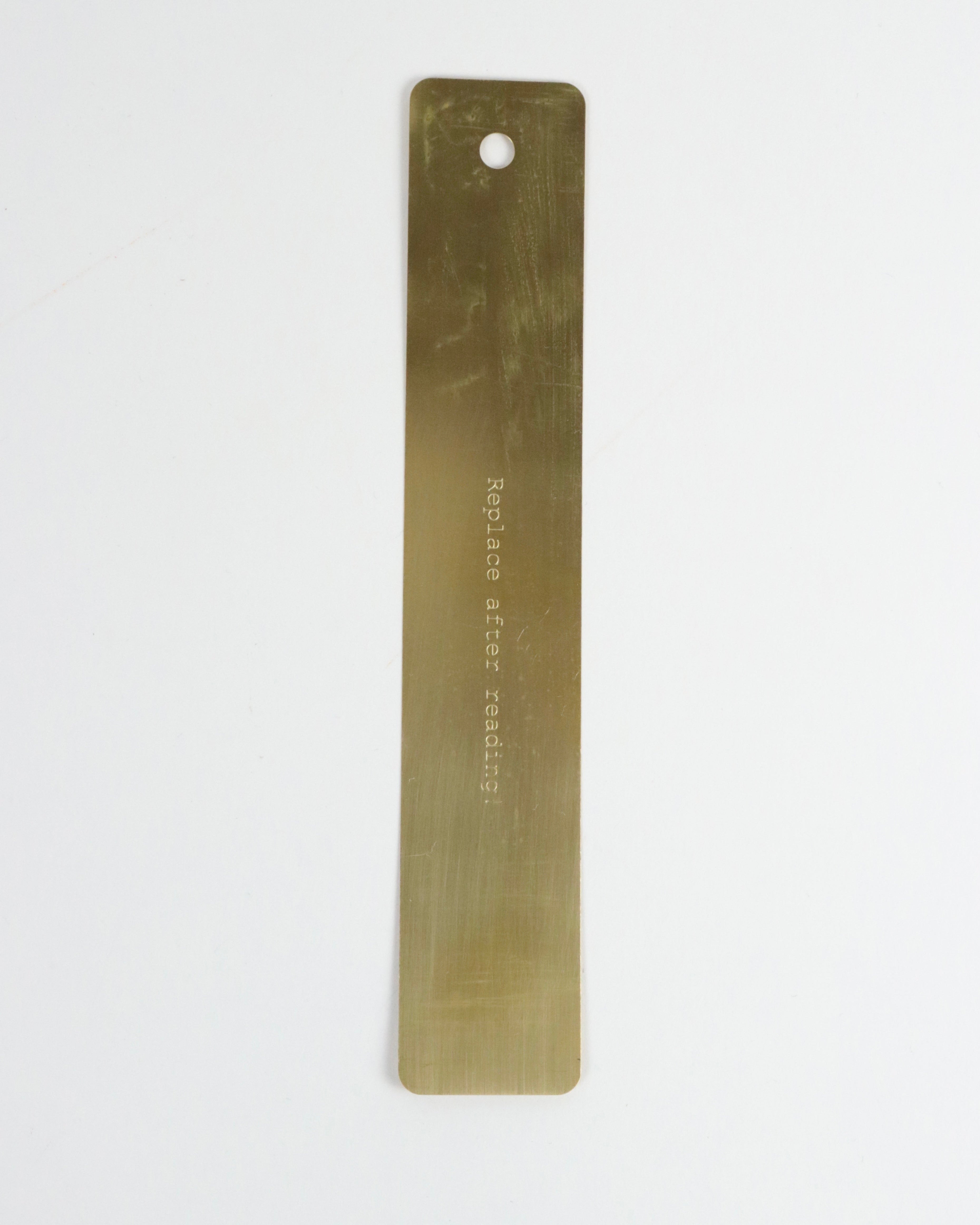 軽やかな薄い真鍮シートに、Replace after reading!と印字されています。本が読まれていない間のひと休み。マイケルデザインの包装紙も素敵です。