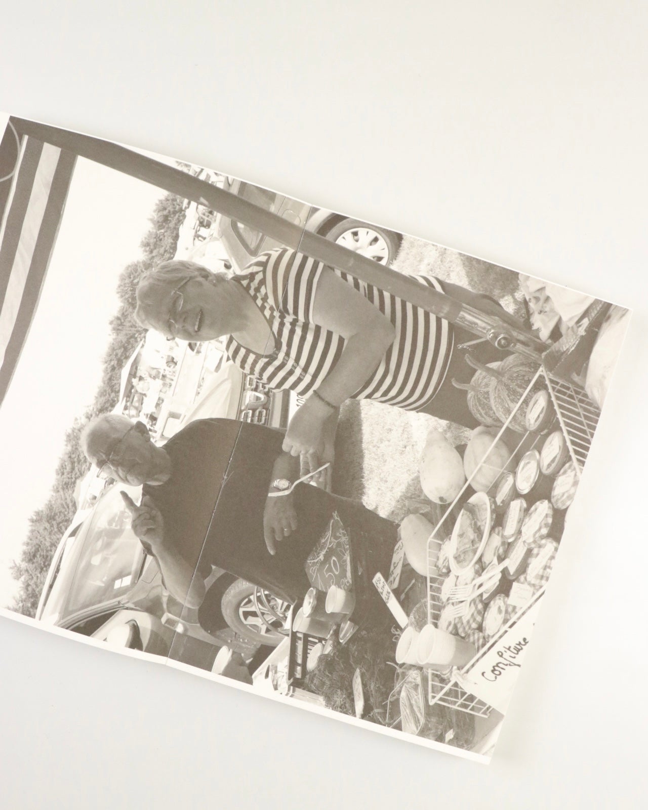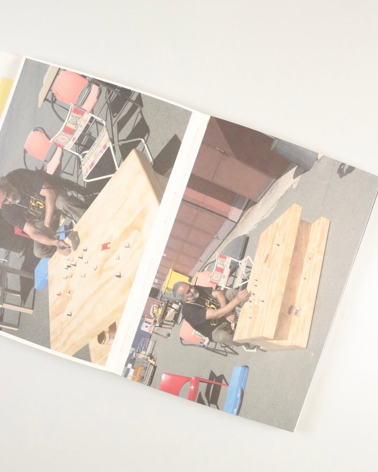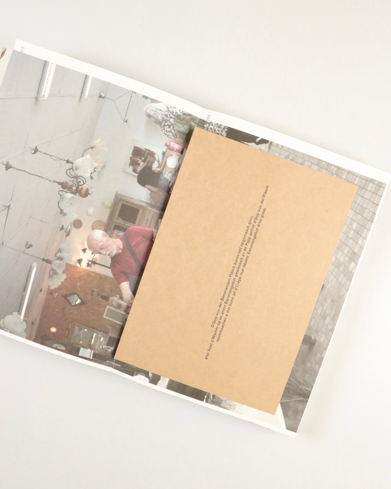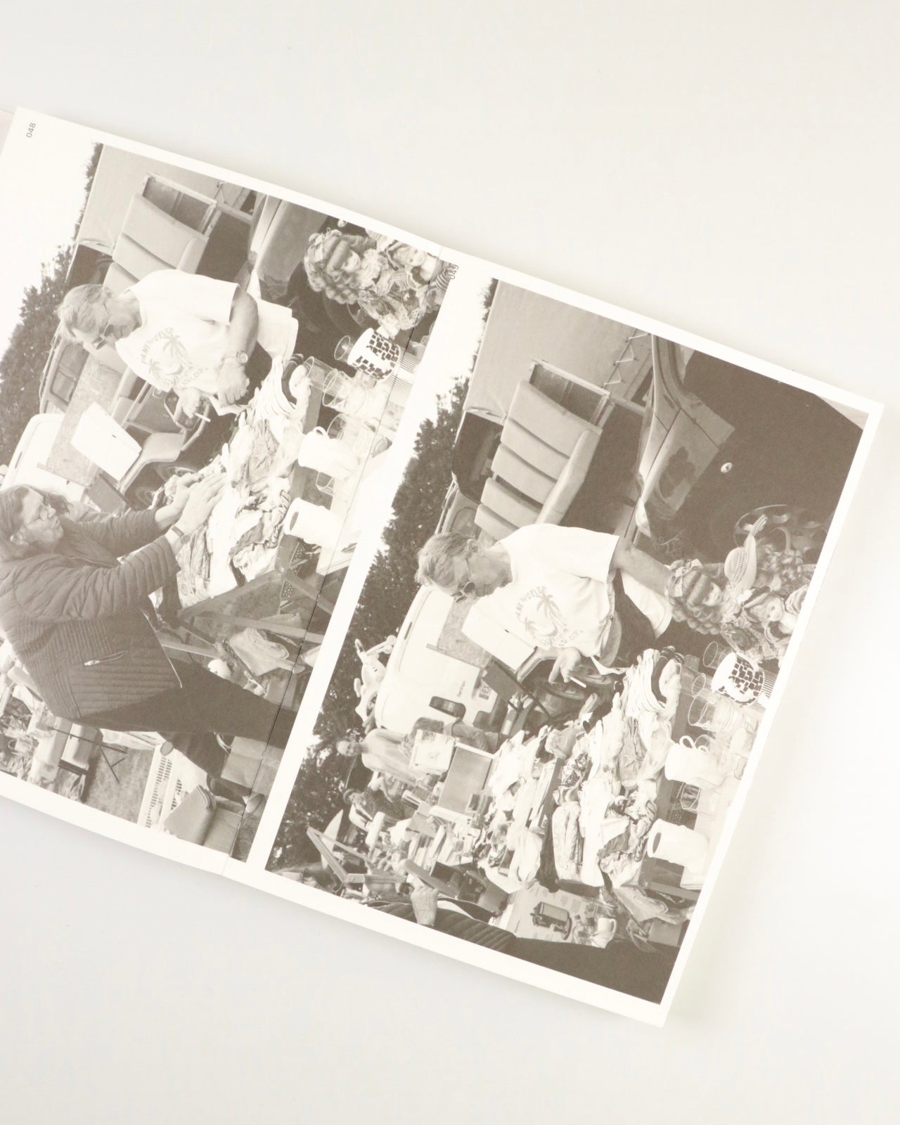 本書は、買い付けの先々に居合わせた人らを撮影したポートレート集です。「大きな家」にいた彼らに、購入した古物を使って、自宅のような振る舞いを演じるよう依頼します。