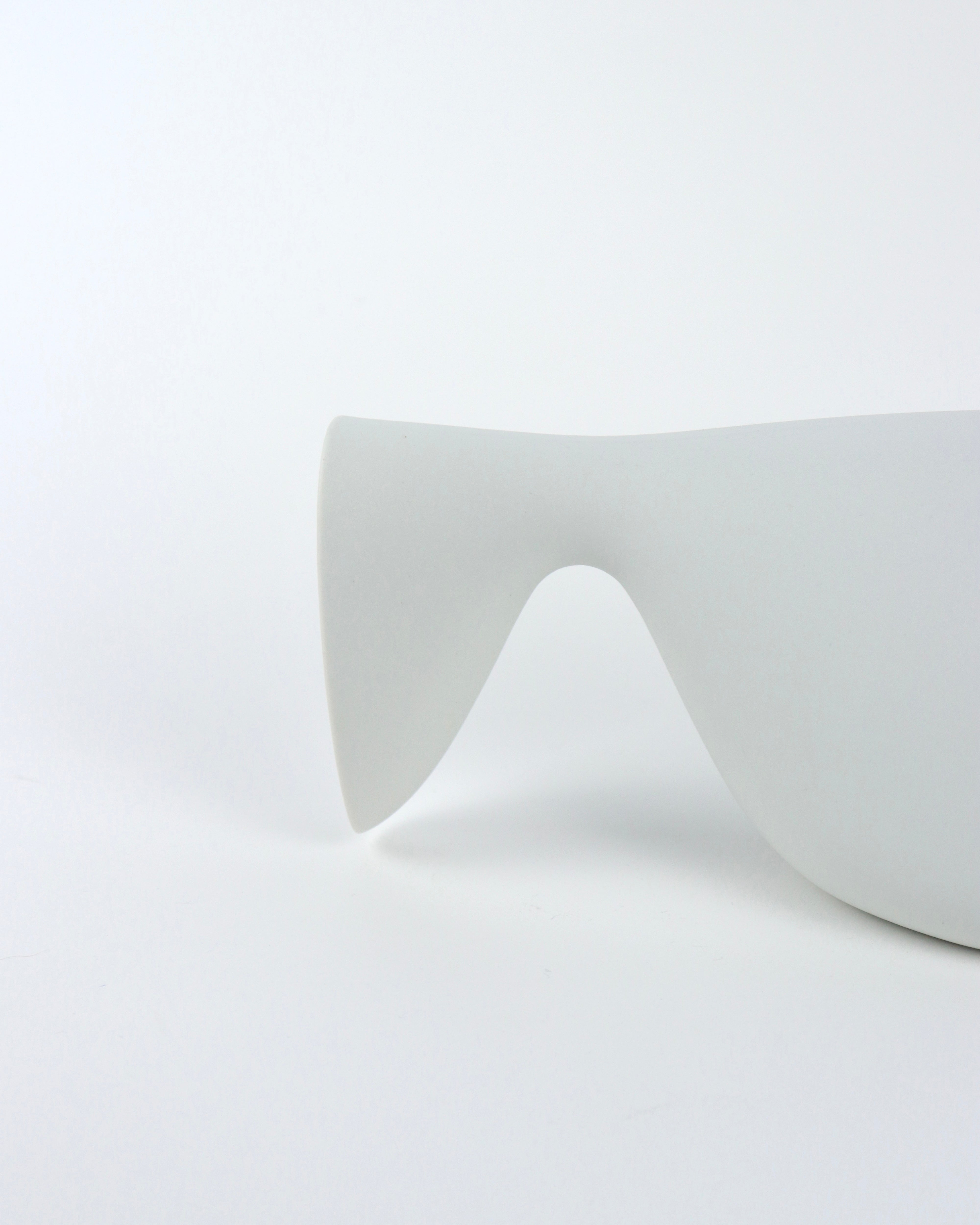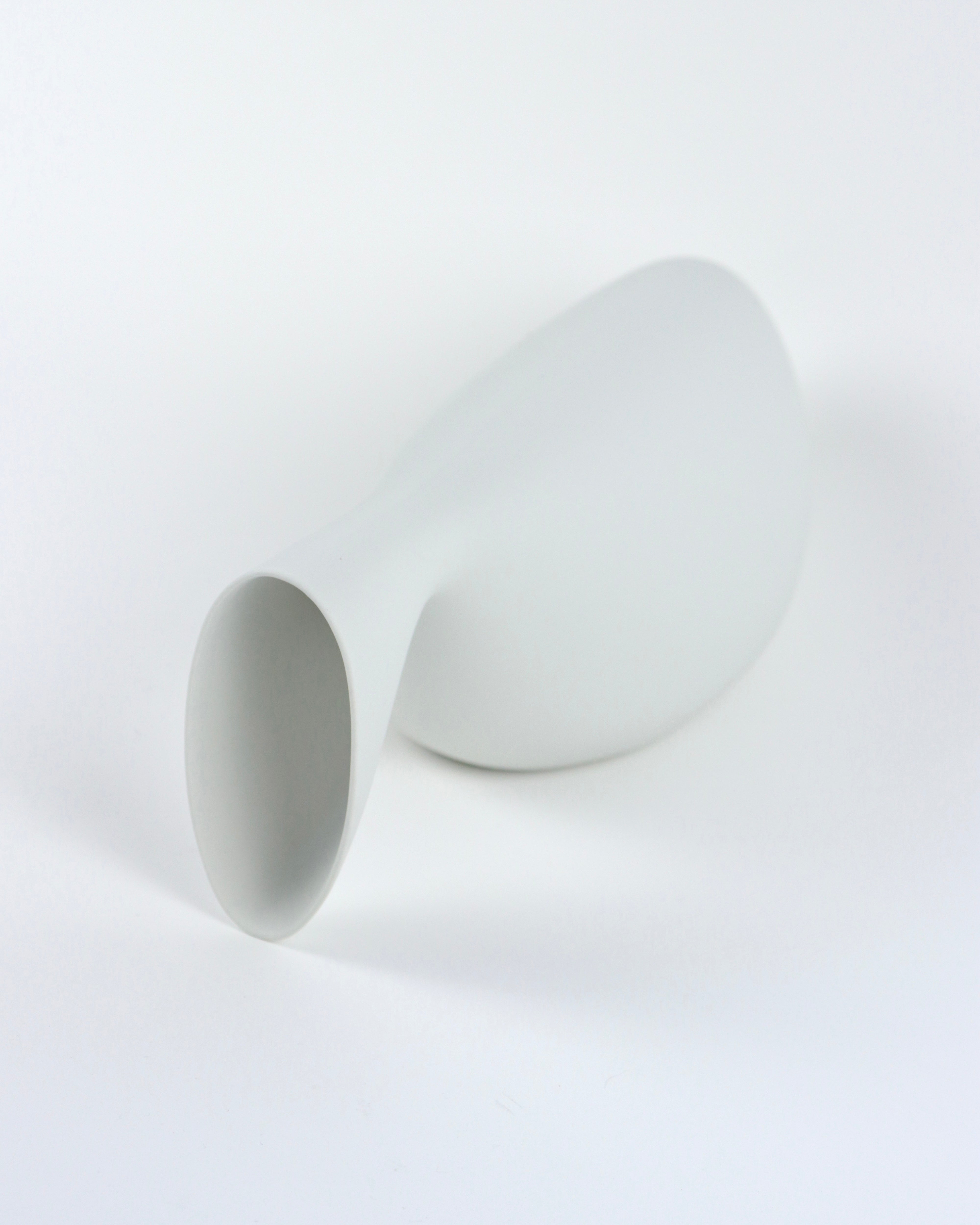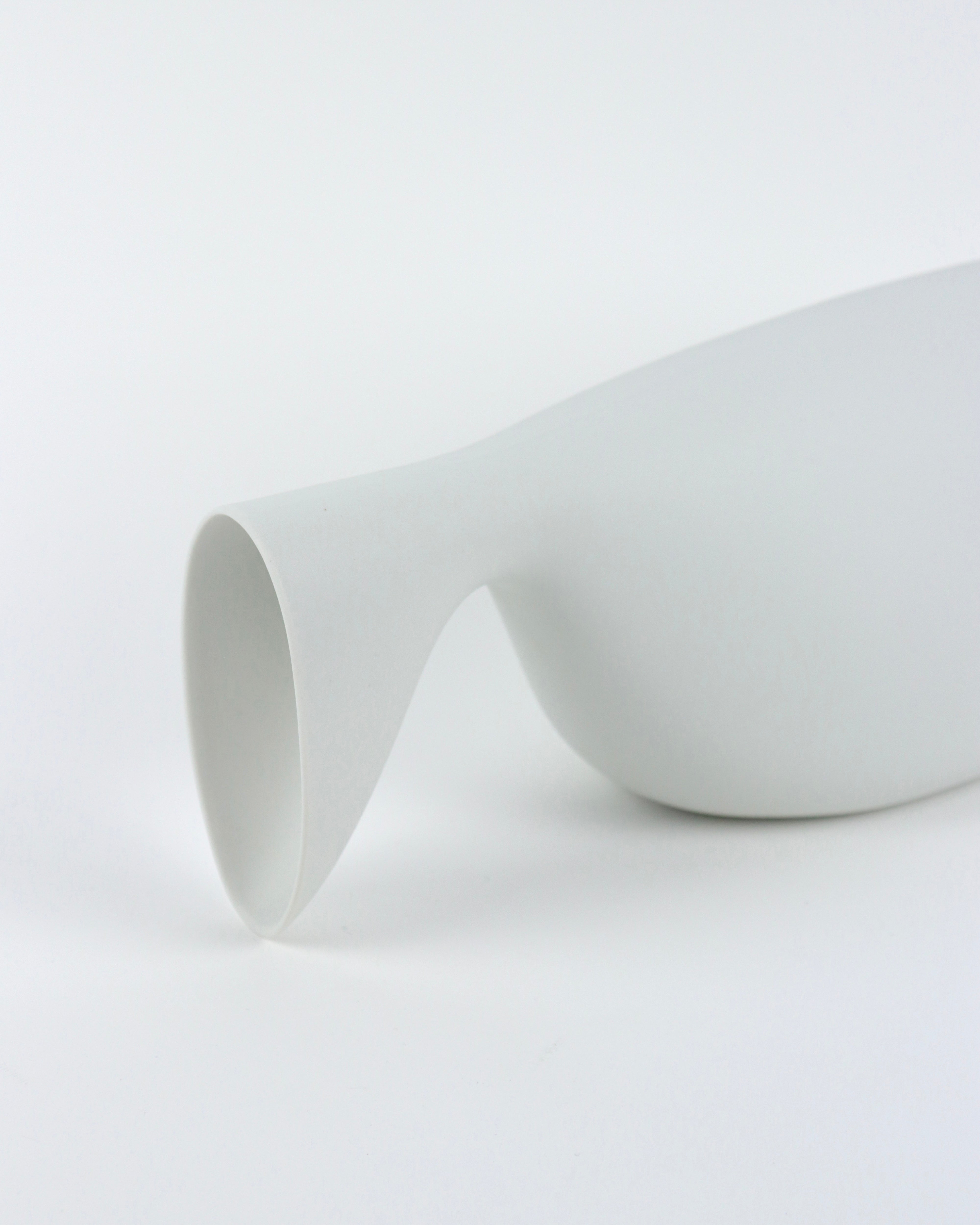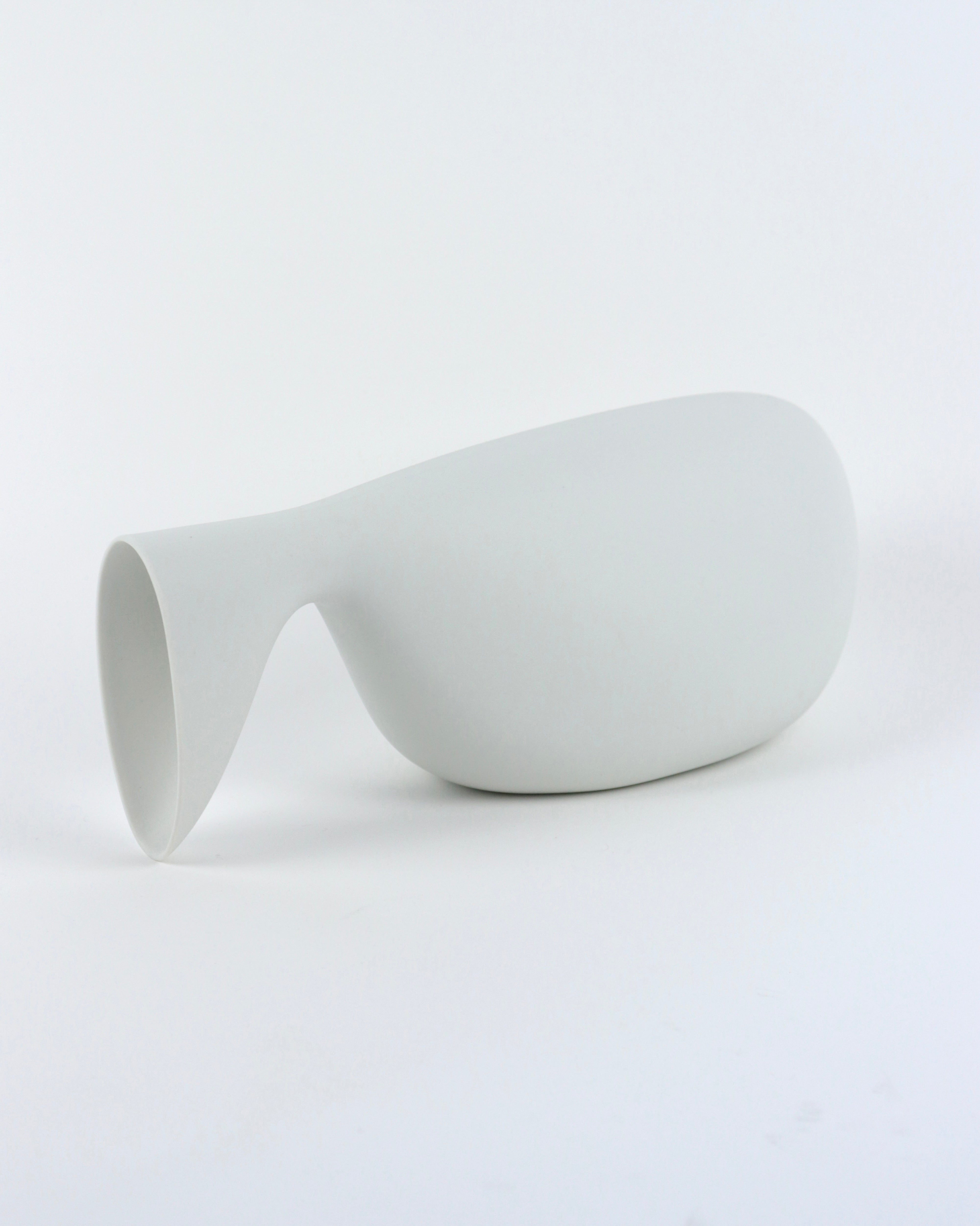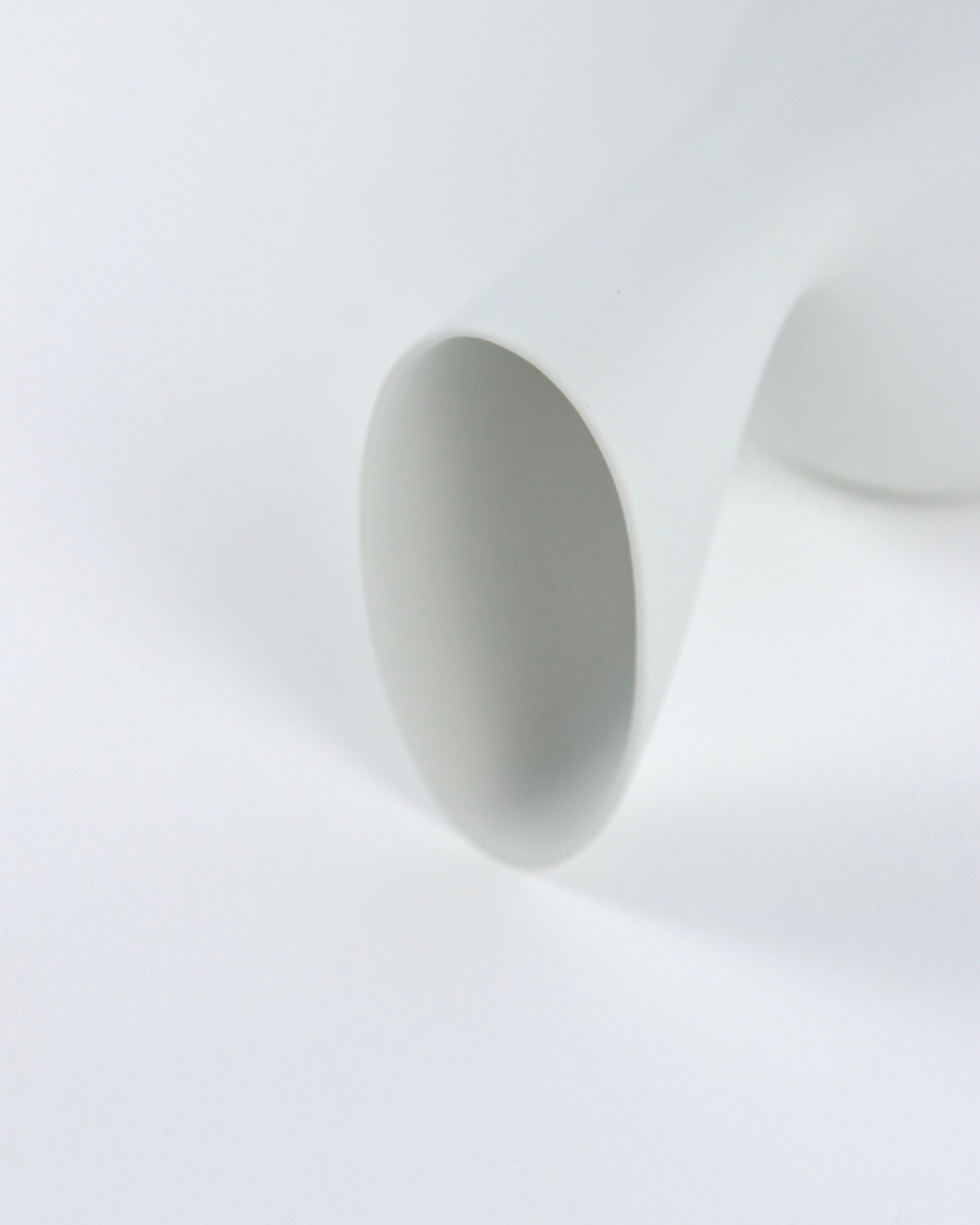 Aldo Bakkerにより制作されたPorcelin seriesのひとつ「Water Carafe」横型のカラフェ。注ぎ口と貯水部との間には、くびれのような美しいラインで繋がっています。持ち上げるとくびれに手が上手く沿うように、持った時に最も美しいように制作されているようです。水を入れていくことで、水の音、重量を感じ、広い注ぎ口から適切な量の水を入れるために、細心の注意が必要になります。Aldo Bakkerのブログも更新しております。そちらもあわせてご覧ください。