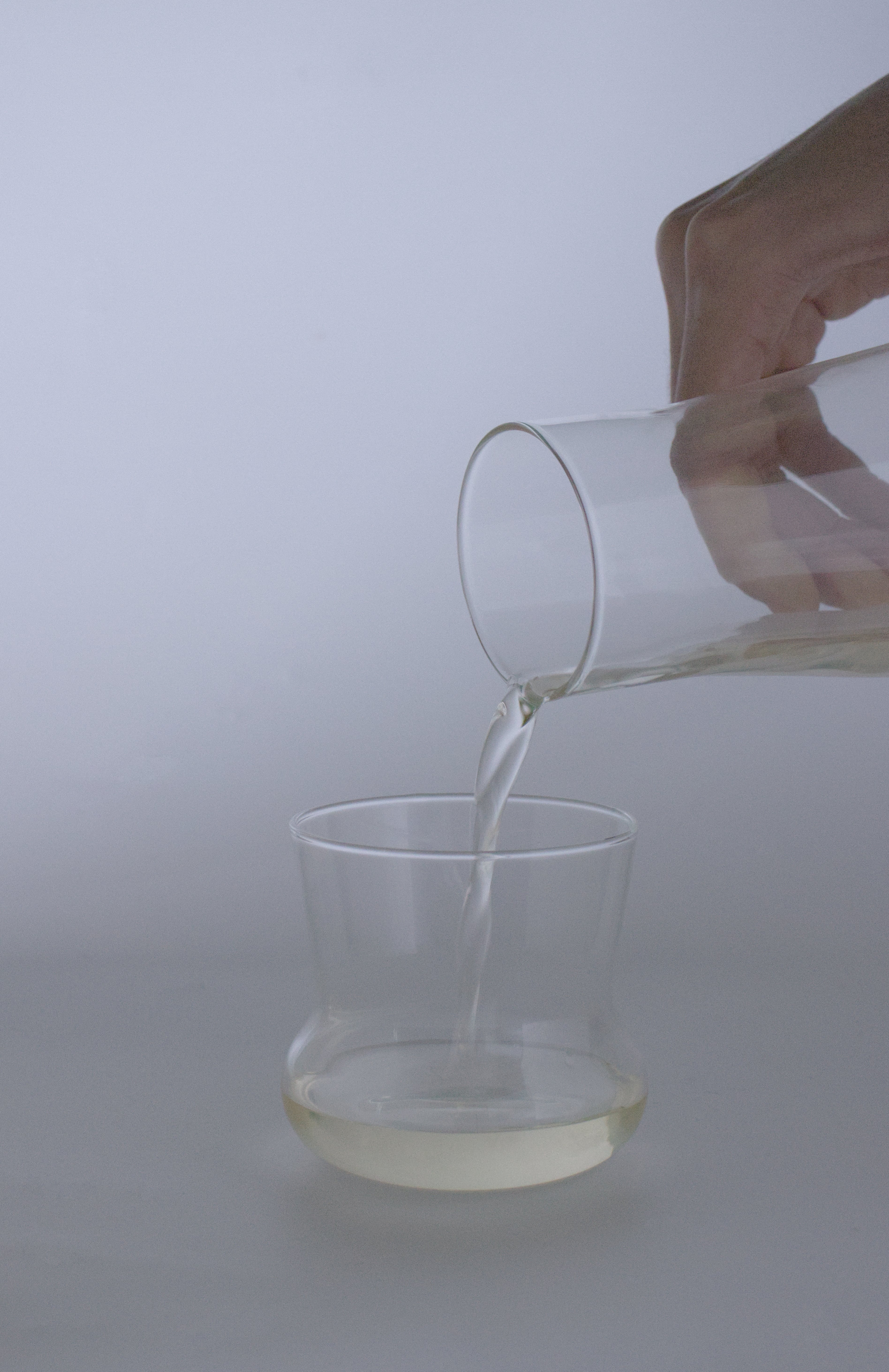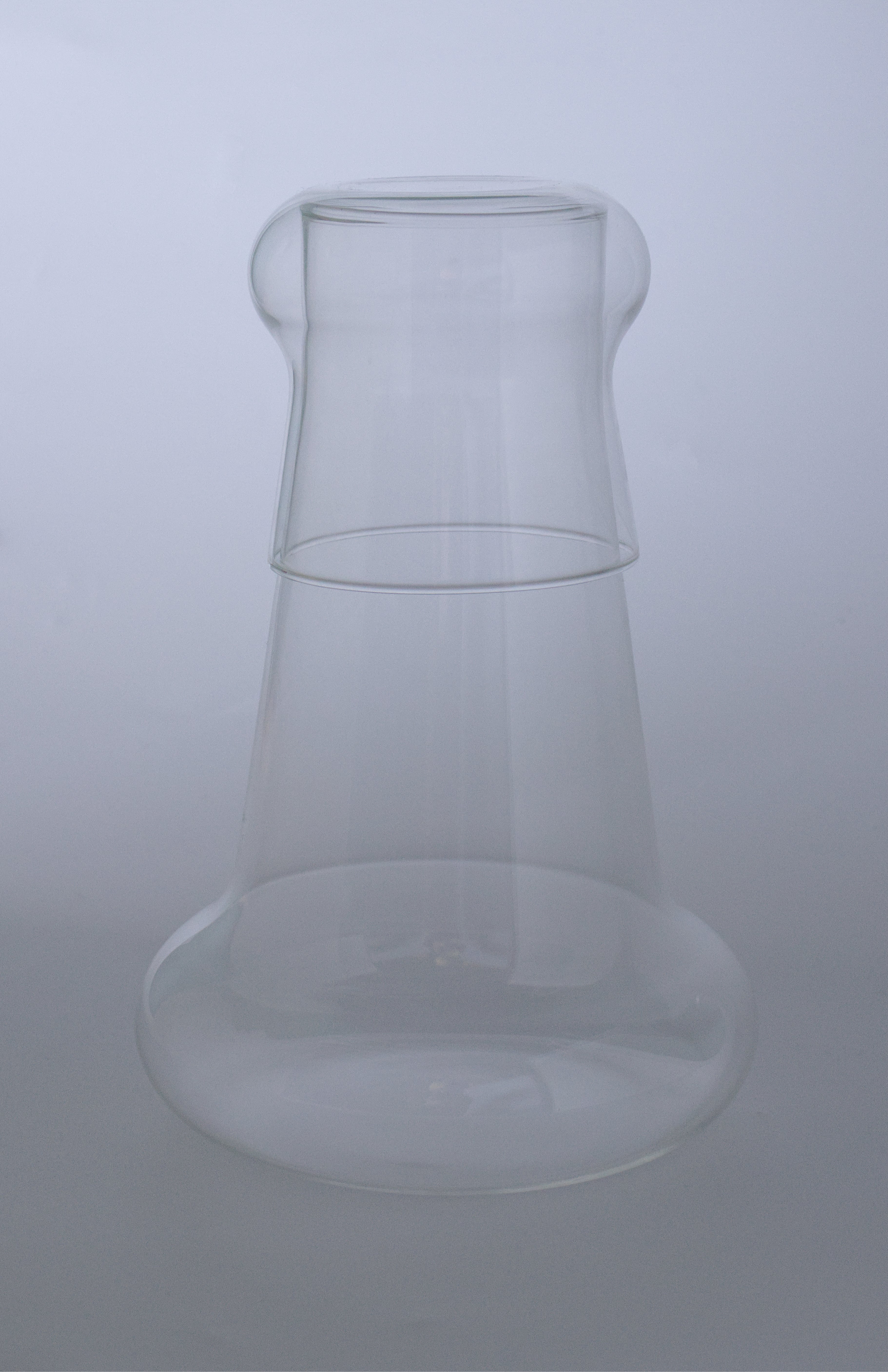 2000年にデザインされたアルド・バッカーのカラフェとグラスのセット。カラフェの口に合わせてぴたりと収まるグラスと、対になるようカラフェにも曲線を持ったシルエットが眼を惹きます。実用的でありながら、アルドの作品らしく全体的に丸いシルエットは、曲線の中でもアルドにしかできない曲線のように感じます。